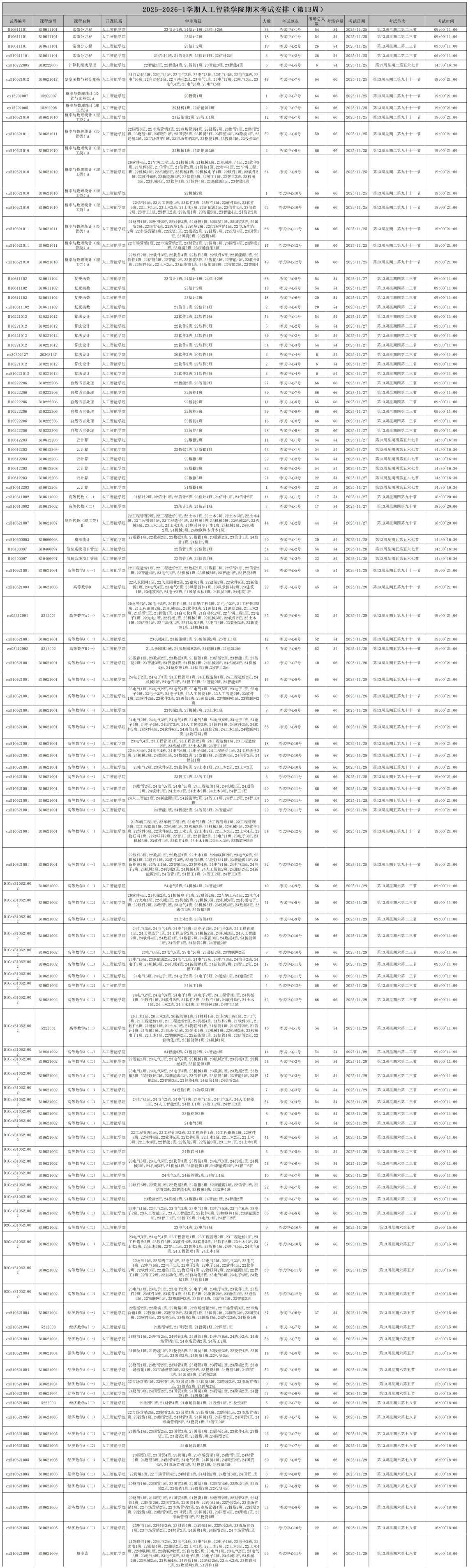 2025-2026-1学期人工智能学院期末考试安排(第13周)
