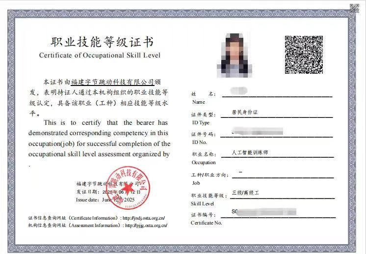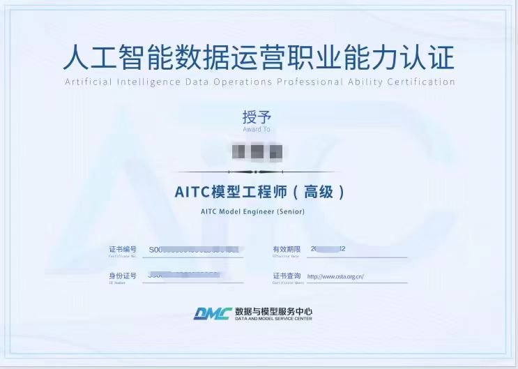 一次认证,同时收获【职业技能等级证书】与【AITC模型工程师(高级) 证书】,权威性与专业性双重保障。