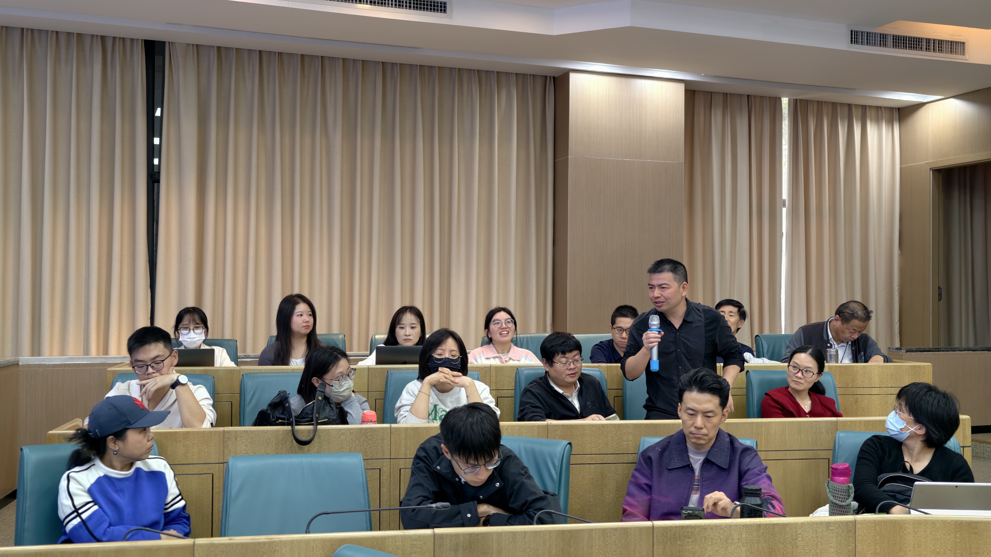 在学术交流环节,现场师生围绕团队管理软件、医学领域AI辅助诊断风险、数据库不完整性和训练局限性等问题与张教授展开交流探讨。