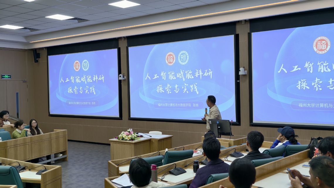 12月4日下午,人工智能学院邀请福州大学张栋教授在合一报告厅开展《人工智能赋能科研的探索与实践》专题学术讲座,本次讲座围绕人工智能发展历程及跨学科应用实践展开,系统呈现了AI技术在医学、可编程网络、化学等领域的有益实践和突出成果,为在场科研工作者搭建了前沿学术交流平台。