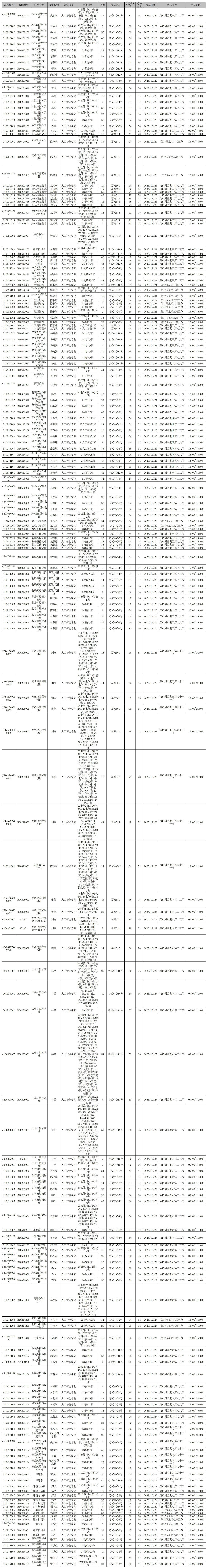 2025-2026-1学期人工智能学院期末考试安排(第17周)
