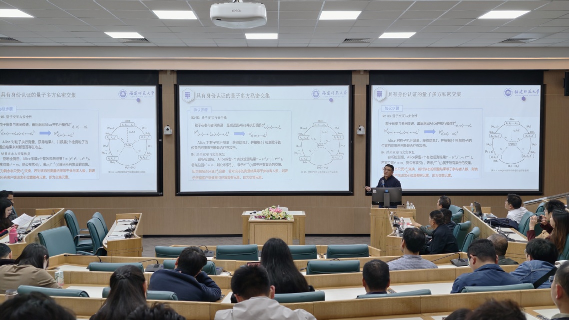 最后,林教授根据其研究团队的最新成果,为与会教师详细介绍了基于中国剩余定理的量子匿名排序、基于量子游走的量子安全数值计算、具有身份认证的量子多方私密交集这三大课题。