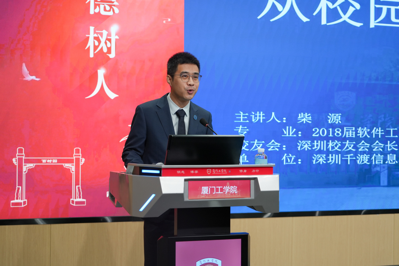 2025年12月19日下午,厦门工学院第十二期“创天下”校友论坛讲座在政务大厦立林学术报告厅隆重举行。本期论坛讲座以“从校园到职场,我的成长与感悟”为主题,邀请到人工智能学院2018届软件工程优秀毕业生柴源校友回校分享成长经历,为师生们带来了一场关于梦想、坚持与转型的深度分享。