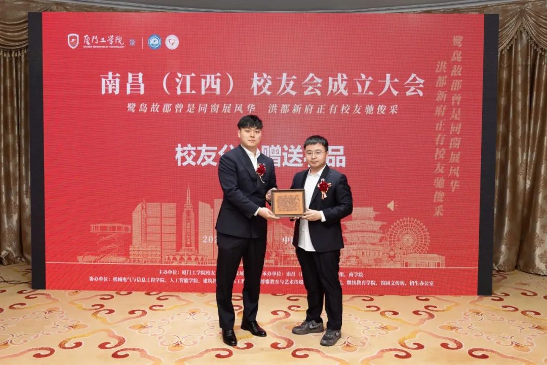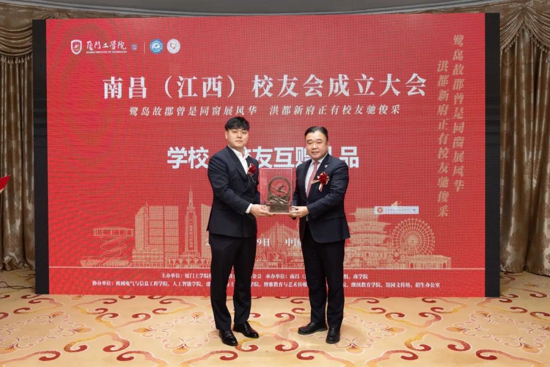 李雄虎副董事长、执行校长代表学校与南昌(江西)校友会、龙岩校友会互赠礼品。