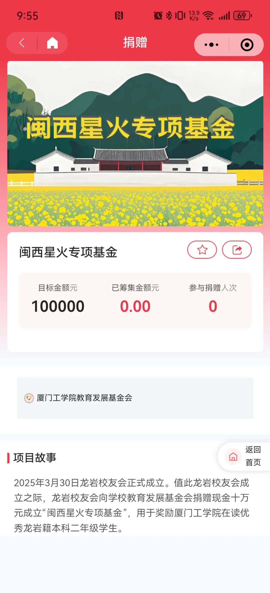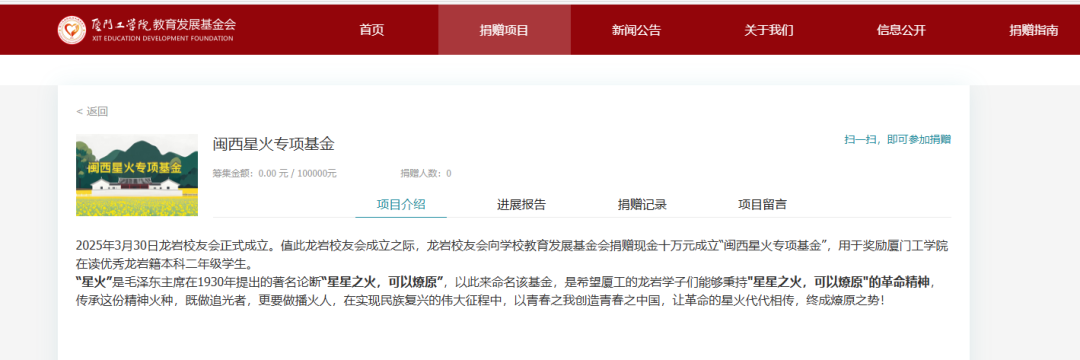 目前,闽西星火专项基金已在基金会官网和微信公众号上线!