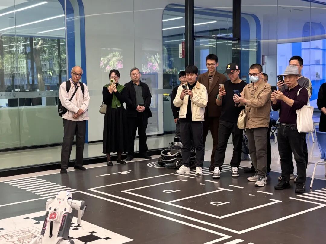 随后,嘉宾们来到华为人工智能学院。我校人工智能产业学院副院长徐望教授,带领校友们依次参观了人工智能生态展厅、AI场景应用研发中心、鸿蒙智能物联研发中心。紧接着,徐望教授以“华为技术赋能行业进阶”为主题,深入浅出地分享了AI技术在智能制造领域的最新应用与实践。展厅内,各类智能设备与技术展板配合实物演示,生动呈现了数字孪生、5G工业互联等前沿技术的多元化应用。嘉宾们在虚拟调试平台前驻足观看,对学生们熟练操作工业级智能制造系统的能力表示赞赏。