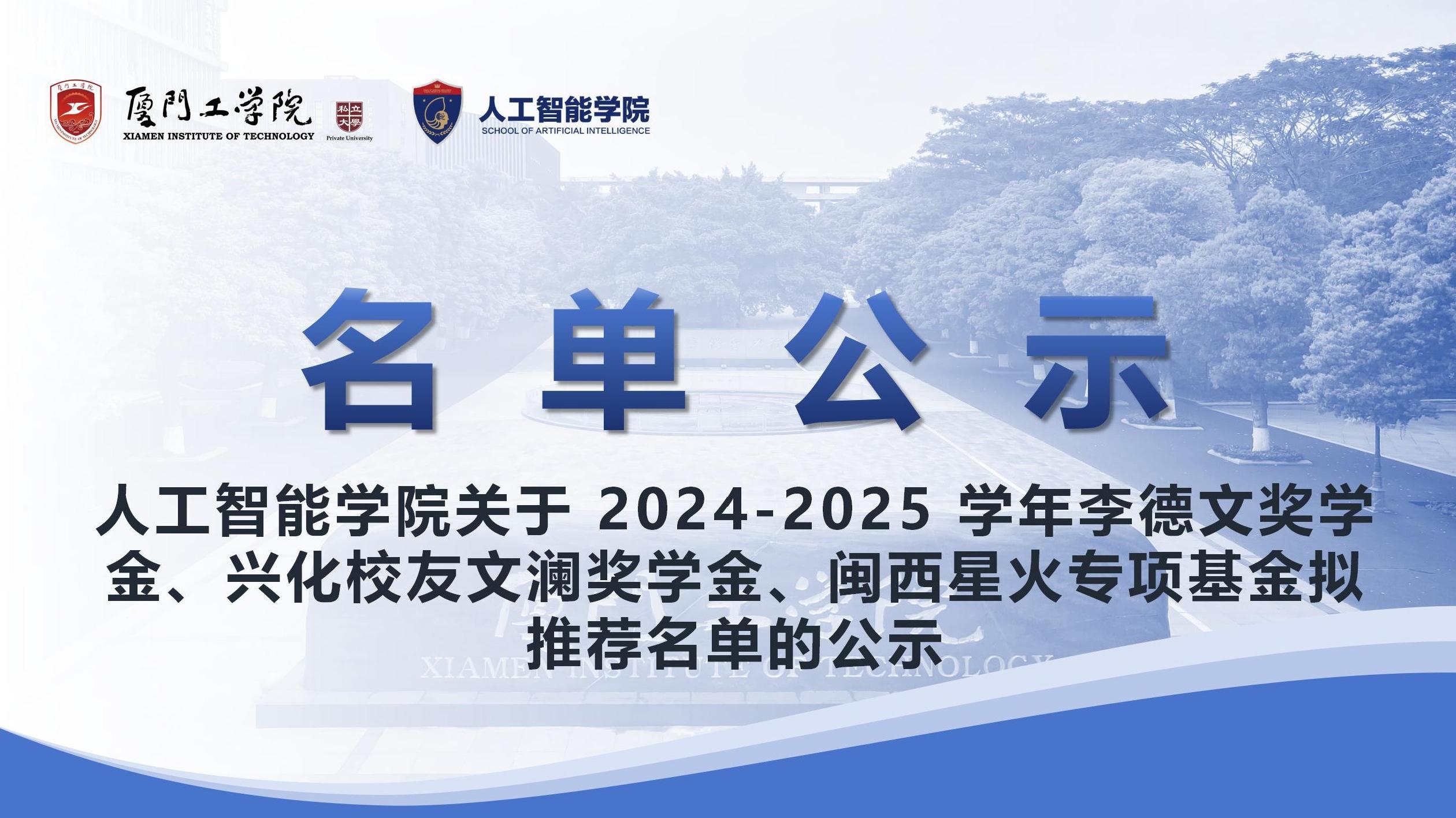 人工智能学院关于 2024-2025 学年李德文奖学金、兴化校友文澜奖学金、闽西星火专项基金拟推荐名单的公示