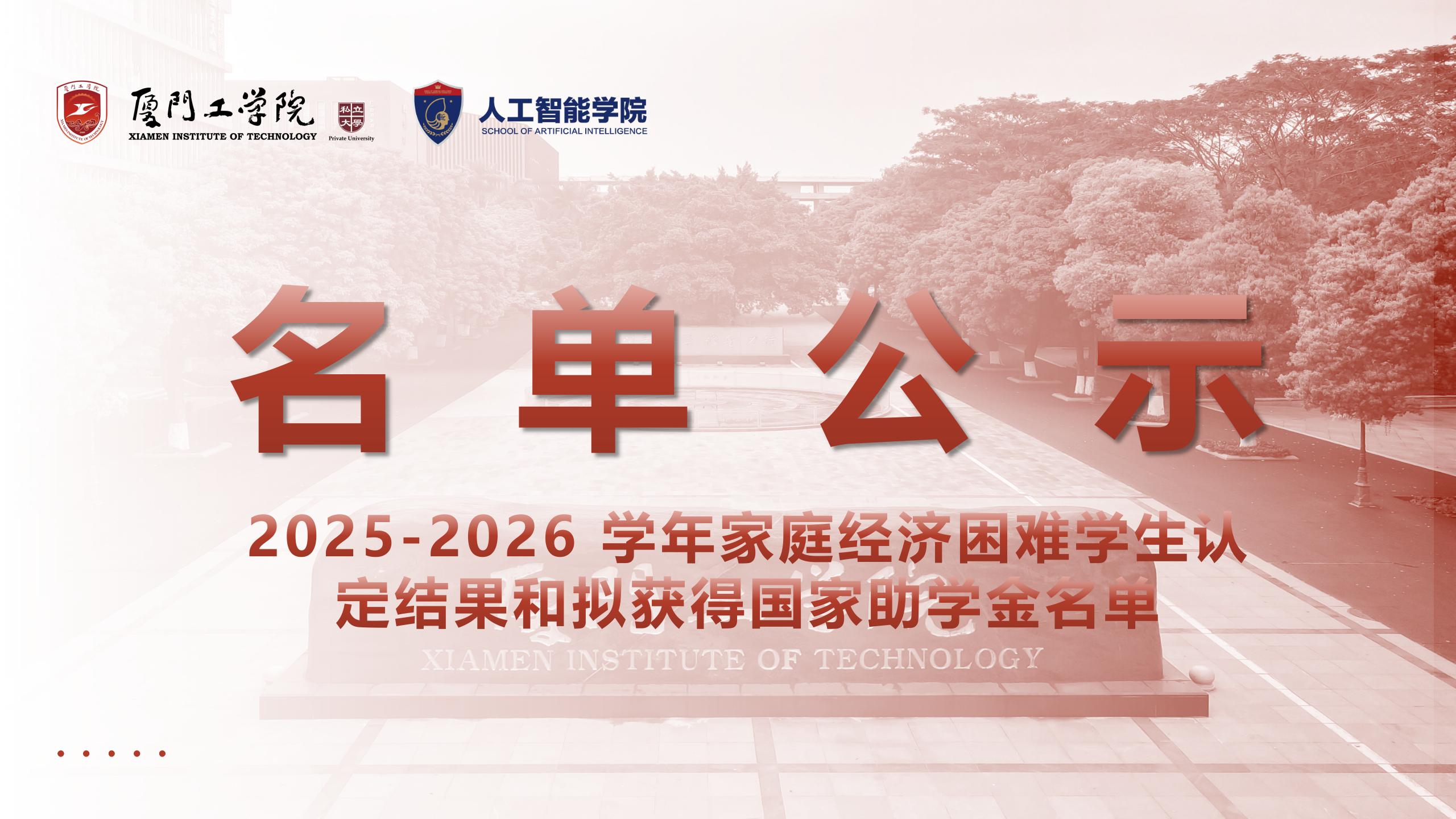 人工智能学院关于 2025-2026 学年家庭经济困难学生认定结果和拟获得国家助学金名单的公示