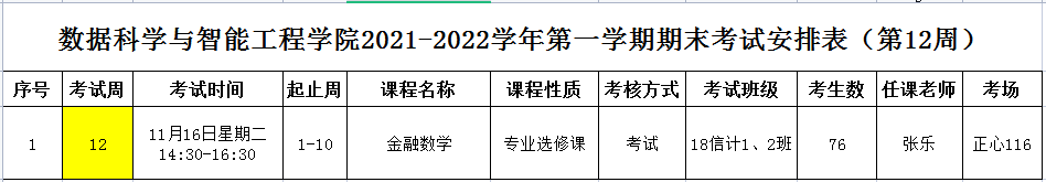 (第12周)2021-2022学年第一学期专业课期末考试安排表