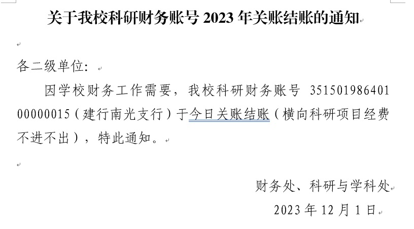 【校内】关于我校科研财务账号2023年关账结账的通知