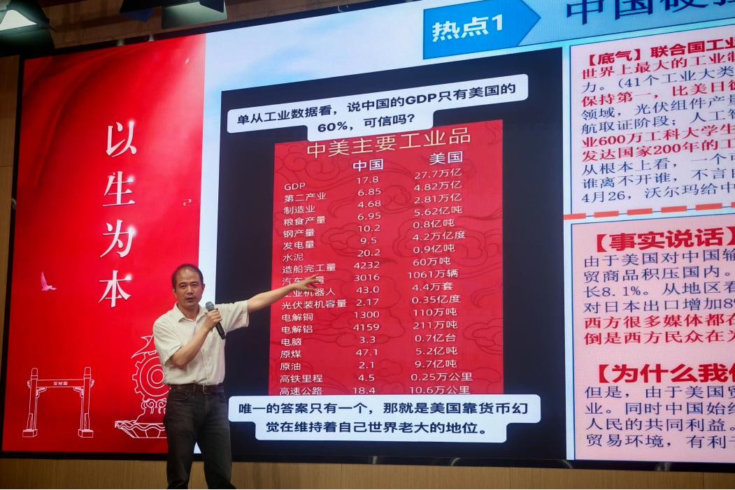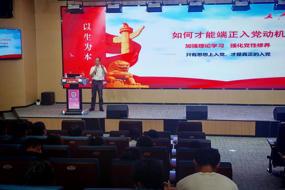 朱瑞元书记从青春讲起,以共产主义先驱李大钊、铁血师长陈树湘、青年英雄陈延年、陈乔年、“共和国勋章”获得者的战斗英雄张富清、近代爱国科学家黄大年、深耕基层燃灯校长张桂梅等优秀共产党员的事迹为例,表明青年要坚定理想信念。根据近现代中国的发展变化,阐述中国共产党诞生的意义和发展马克思主义、中国共产党领导的正确性。书记带领学员们对国际热点印巴冲突、DeepSeek冲击波等事迹进行思考分析,进一步拓宽学员们的国际视野和提升对国际事务的敏锐度。随后,朱书记就“如何端正入党动机?”结合例子做出回答:加强理论学习,强化党性修养,端正入党动机。