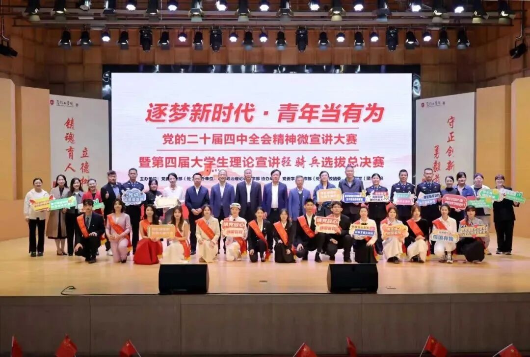 2025年11月27日晚,厦门工学院“逐梦新时代 青年当有为”党的二十届四中全会精神微宣讲大赛暨第四届大学生理论宣讲轻骑兵总决赛在学校音乐厅成功举办。来自我校各学院的15名青年宣讲员同台竞技,以鲜活故事、青春视角,深度解读党的二十届四中全会的精神内核,为现场师生呈现了一场有温度、有深度、有力度的理论盛宴。