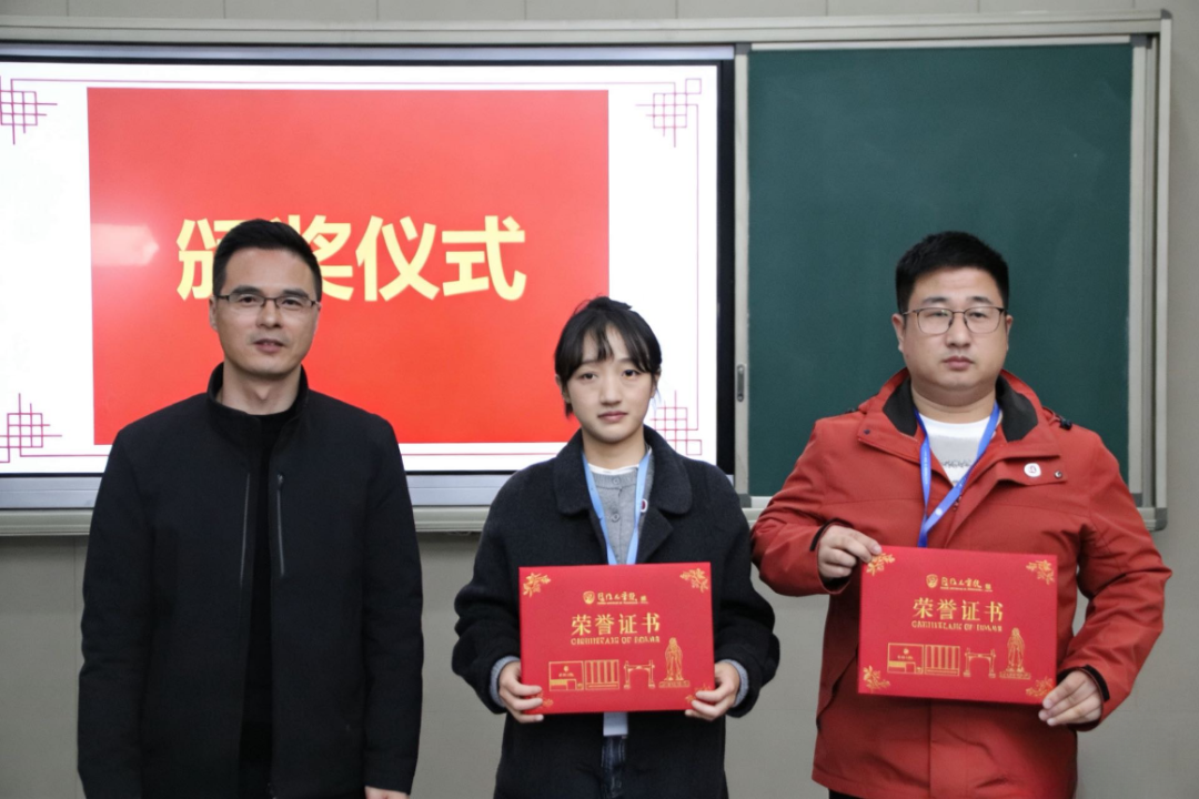 由厦门工学院党委李文副书记为一等奖获得者颁奖。
