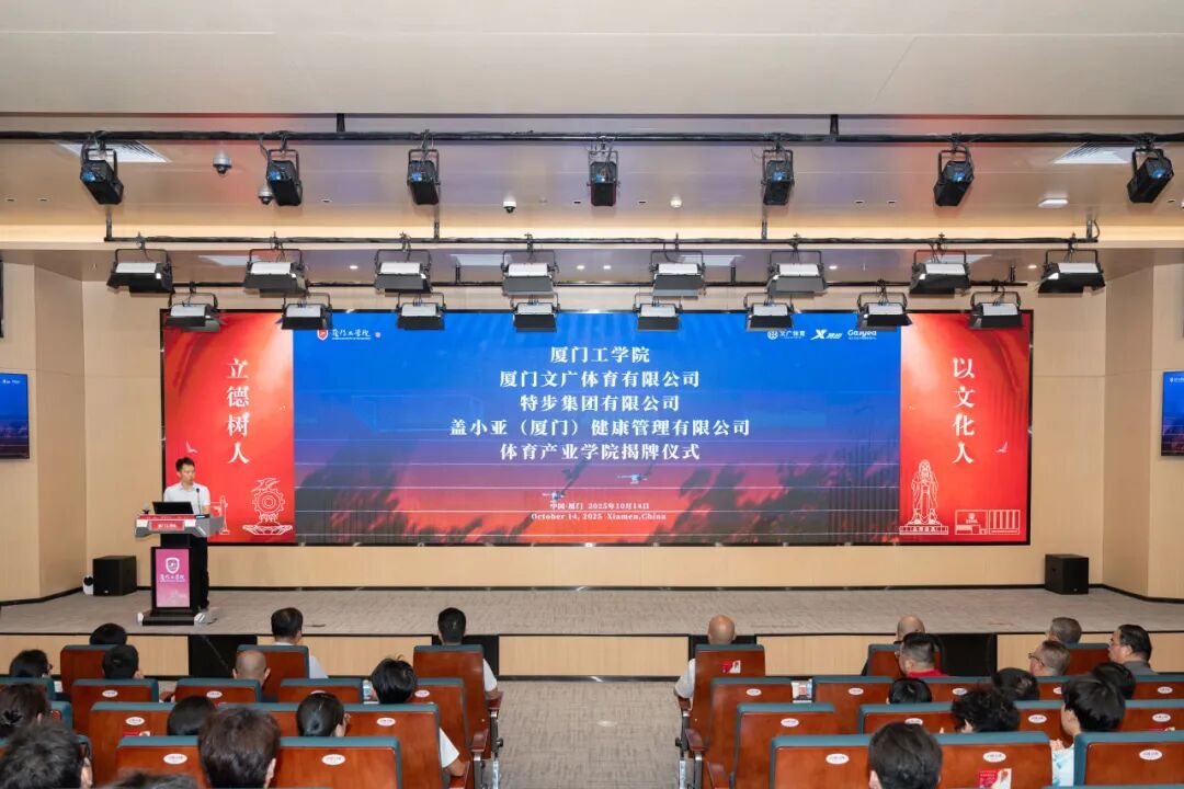 2025年10月14日下午,厦门工学院体育产业学院揭牌仪式在学校立林学术报告厅举行。学校领导、合作企业嘉宾、师生代表齐聚一堂,共同见证学校深化体教融合、推动体育产业人才培养的重要时刻。