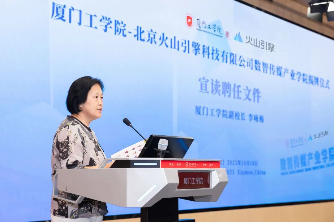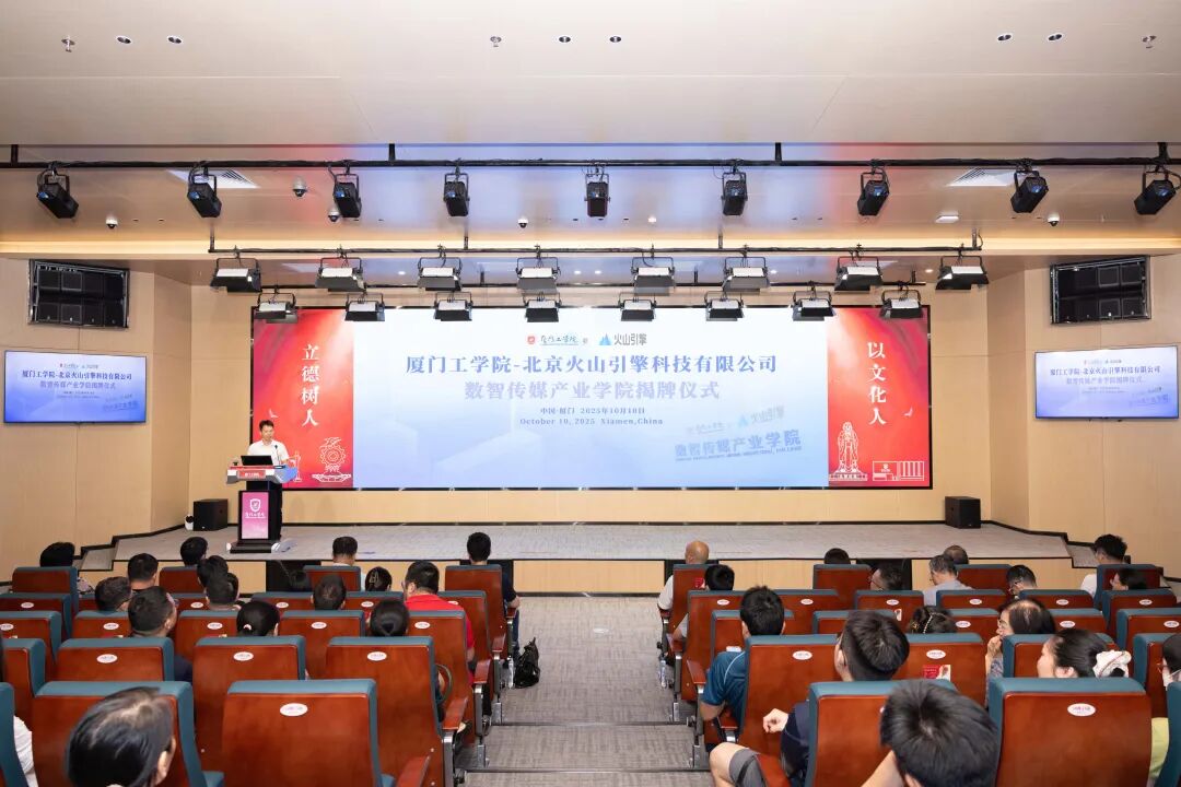 2025年10月10日,厦门工学院与北京火山引擎科技有限公司合作成立的数智传媒产业学院揭牌仪式在厦门工学院立林学术报告厅举行,校企双方代表、学院师生代表等齐聚一堂,共同见证这一具有里程碑意义的时刻。