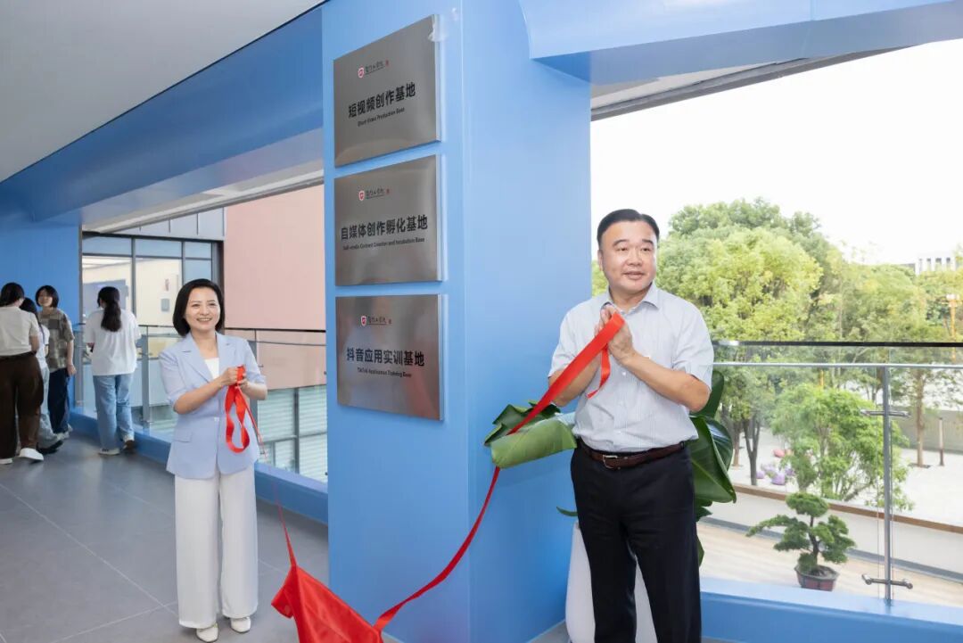 揭牌仪式后,与会领导嘉宾共同参观了数智传媒产业学院。学院内先进的智能设备、模拟真实场景的直播空间、完善的教学配套设施,让大家对产业学院的教学与实践能力有了更直观的认识,也对未来人才培养成果充满期待。