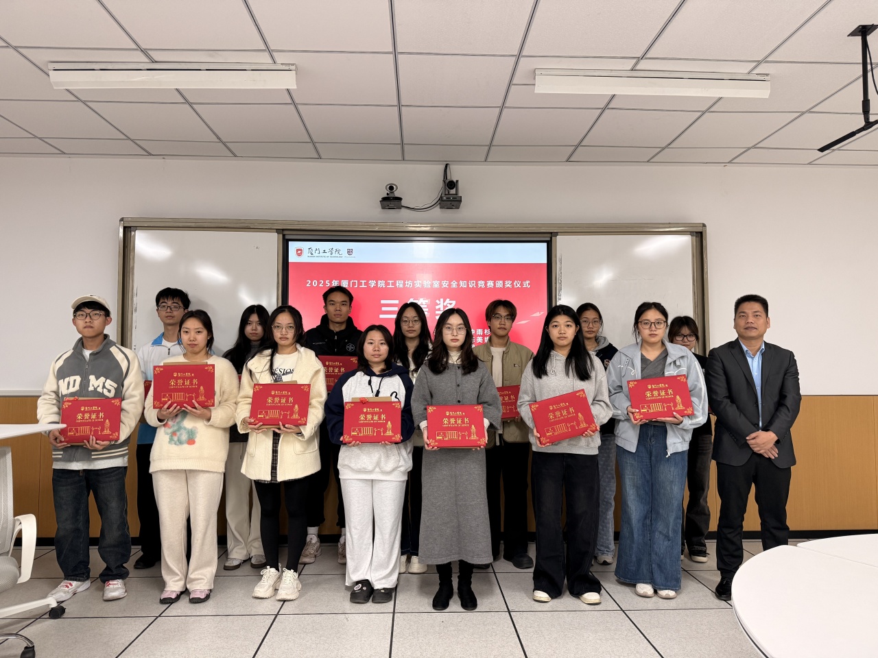 会上工程坊李进珍主任对获奖同学表示衷心的祝贺。我校始终将实验安全摆在突出位置,校董事会与校领导对安全工作高度重视、常抓不懈,建立了完善的安全管理制度体系,形成了学校、学院、实验管理三级安全责任体系。面向未来,我们更需进一步提高思想认识,压实安全工作责任,引导全体师生牢固树立 “安全第一、预防为主” 的底线思维,熟练掌握安全防范知识与实操技能。以常态化、精细化的安全教育工作,不断提升安全教育整体水平,为校园教学科研活动的平稳开展,筑牢坚实可靠的安全屏障。