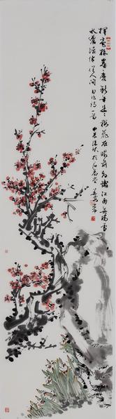 挥毫研墨庆新年,朵朵梅花在眼前。