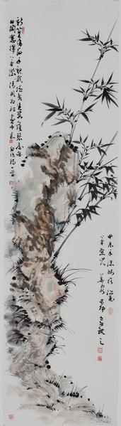 新篁傍石手亲栽,摇曳生姿荫碧台。