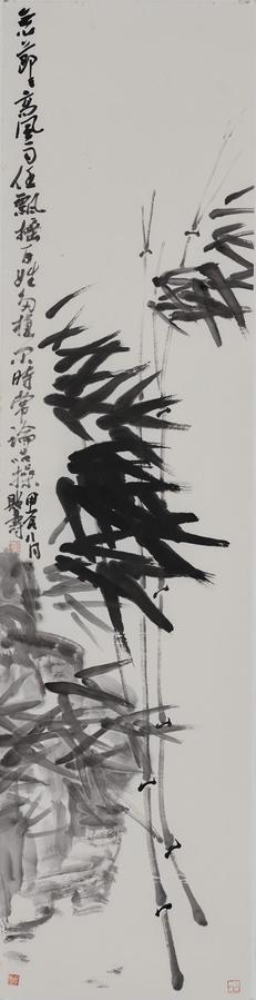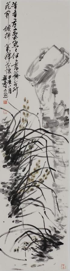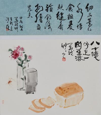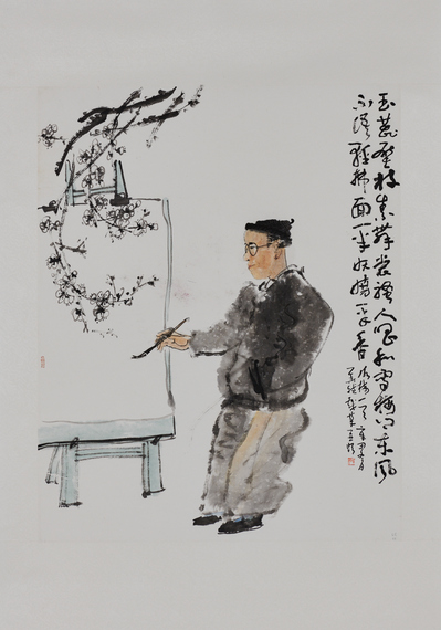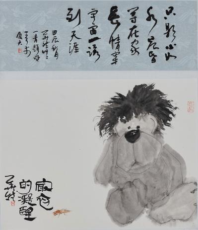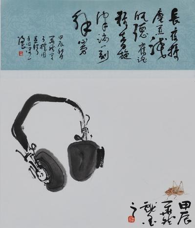 甲辰秋月华斌写耳机图并题自作诗一绝