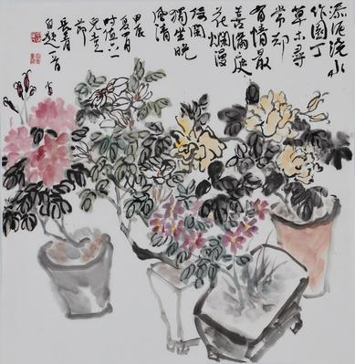 最喜满庭花烂漫,倚阑独坐晚风清。