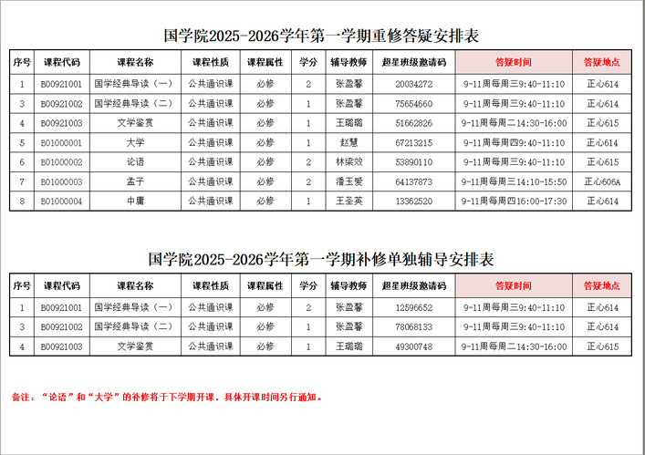 【教务通知】2025-2026学年第一学期自主重新学习及补修答疑安排