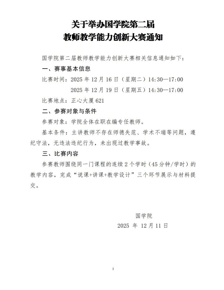 【竞赛通知】关于举办国学院第二届 教师教学能力创新大赛通知