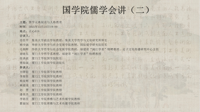 【活动通知】国学院儒学会讲系列(二)| 儒学元典阅读与人格教育