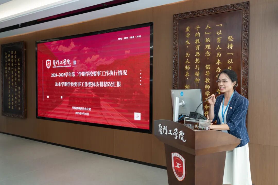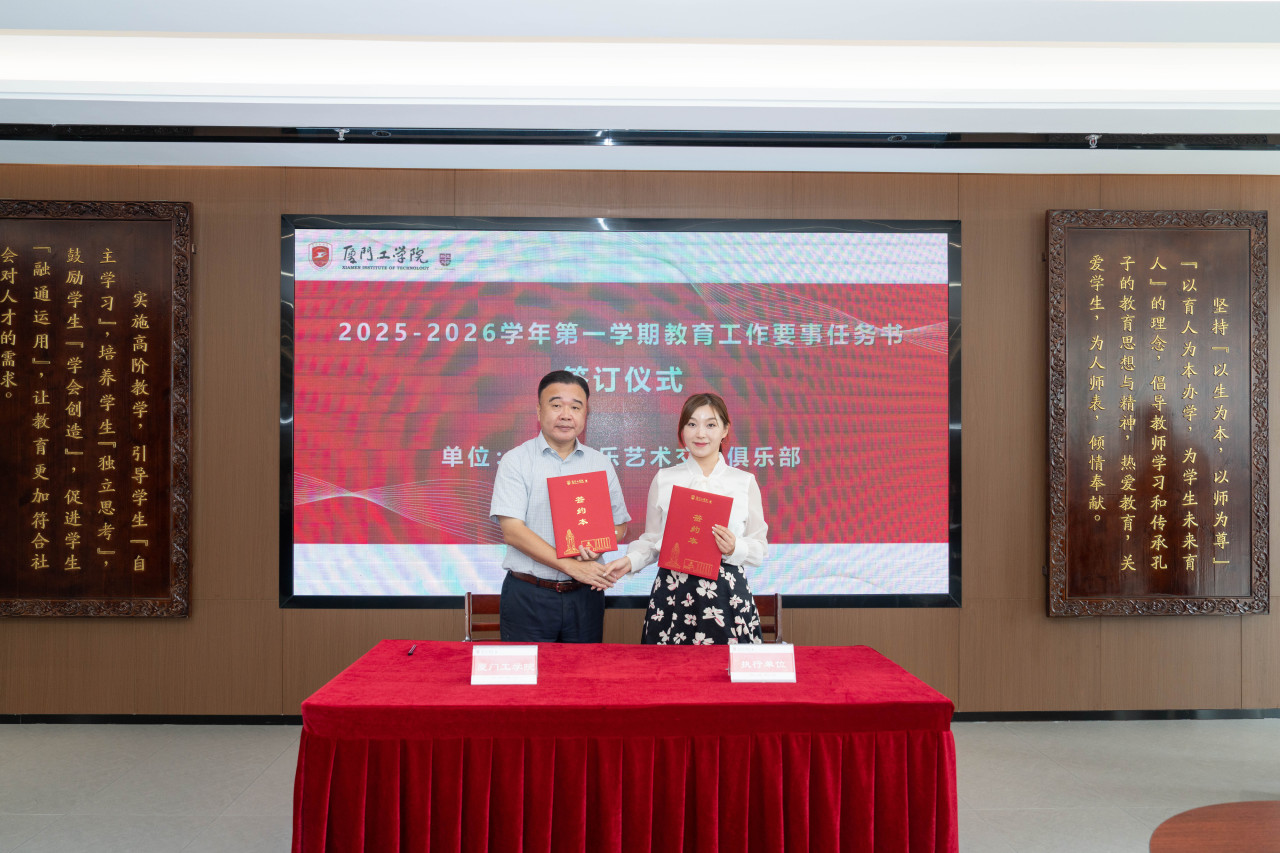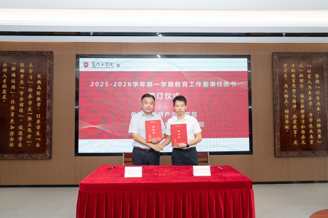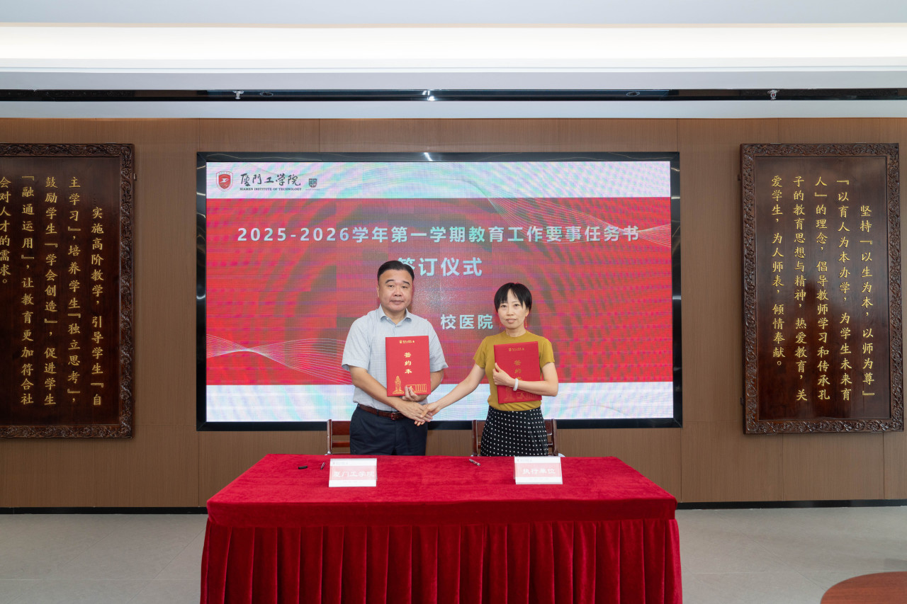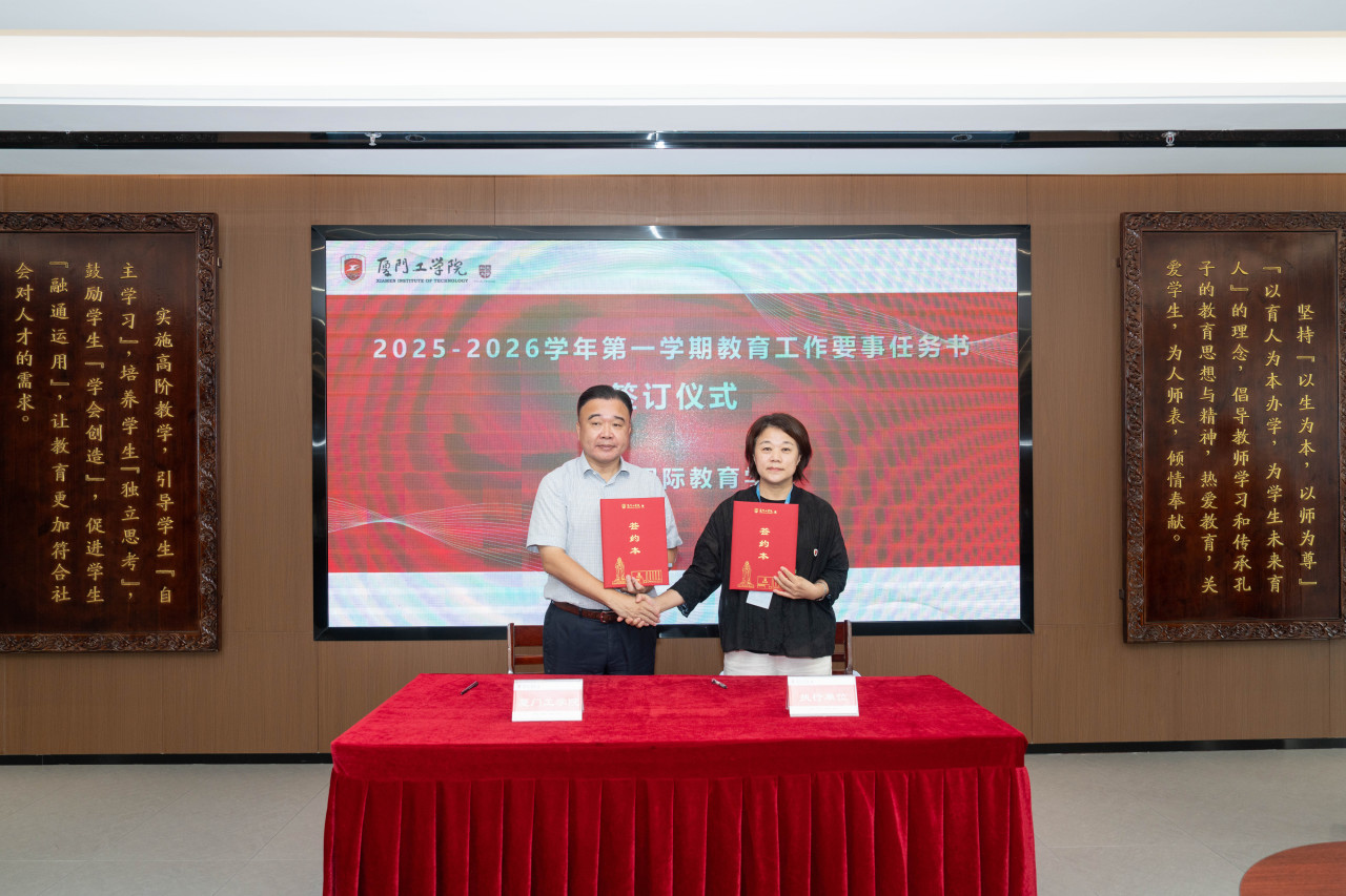 2025年9月26日上午,厦门工学院2025-2026学年第一学期教育工作要事任务书签署仪式在政务大厦广新堂举行。苏涵校长,校党委朱瑞元书记,李雄虎副董事长、执行校长,张凯副校长,各学院、行政、教辅单位负责人及学校要事兼职成员共80余人共同参会。