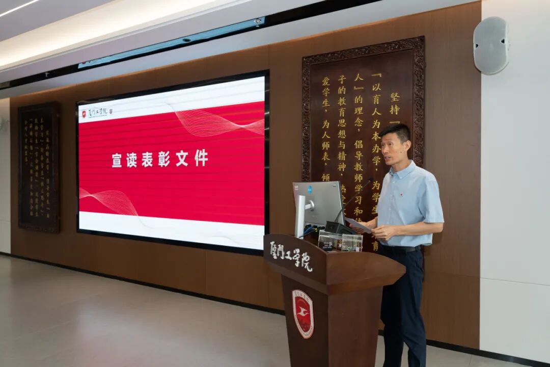 张凯副校长宣读表彰文件。学校对上一学年在学校要事执行工作中表现优异的部门与个人进行表彰,激励全体教职工凝心聚力、协同共进,营造务实高效的工作氛围。