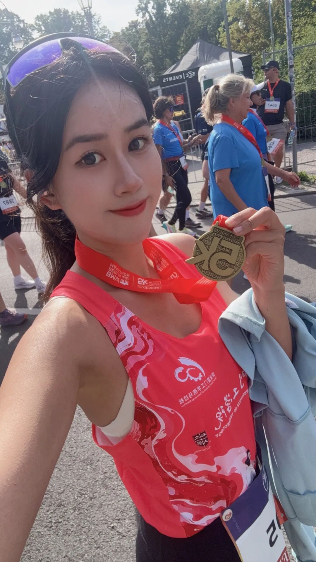 校领导和同事们的支持鼓励,让庄雯莎老师得以安心出征。“大家鼓励我好好比赛,回来后尽快衔接教学工作。这种支持帮我在守住本职的同时逐梦,特别温暖。让我在国外参赛时既能专注比赛,又不用为教学工作分心。”庄雯莎老师说,还要感谢学校马拉松办公室的物资协助,助力她带着“厦小龙”水杯、公仔踏上征程,在异国也能感受到厦工温度,让厦门工学院马拉松走进柏林。