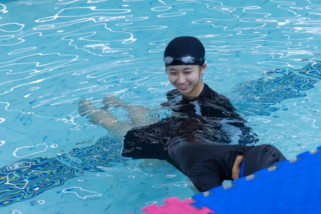 “游泳课教会我的,不只是求生技能,更是沉下去、再浮起来的勇气。”23智能科学与技术1班的叶香琪感慨道,“从前怕水,如今却能在池中舒展身心,是母校给了我这样的底气。”她回忆,每通过一次分级考核,老师都会在池边击掌鼓励。最难的是学换气,呛水时几乎想放弃,可当她上岸回头,看到“夕阳洒满整个水面,像未来在闪烁”。