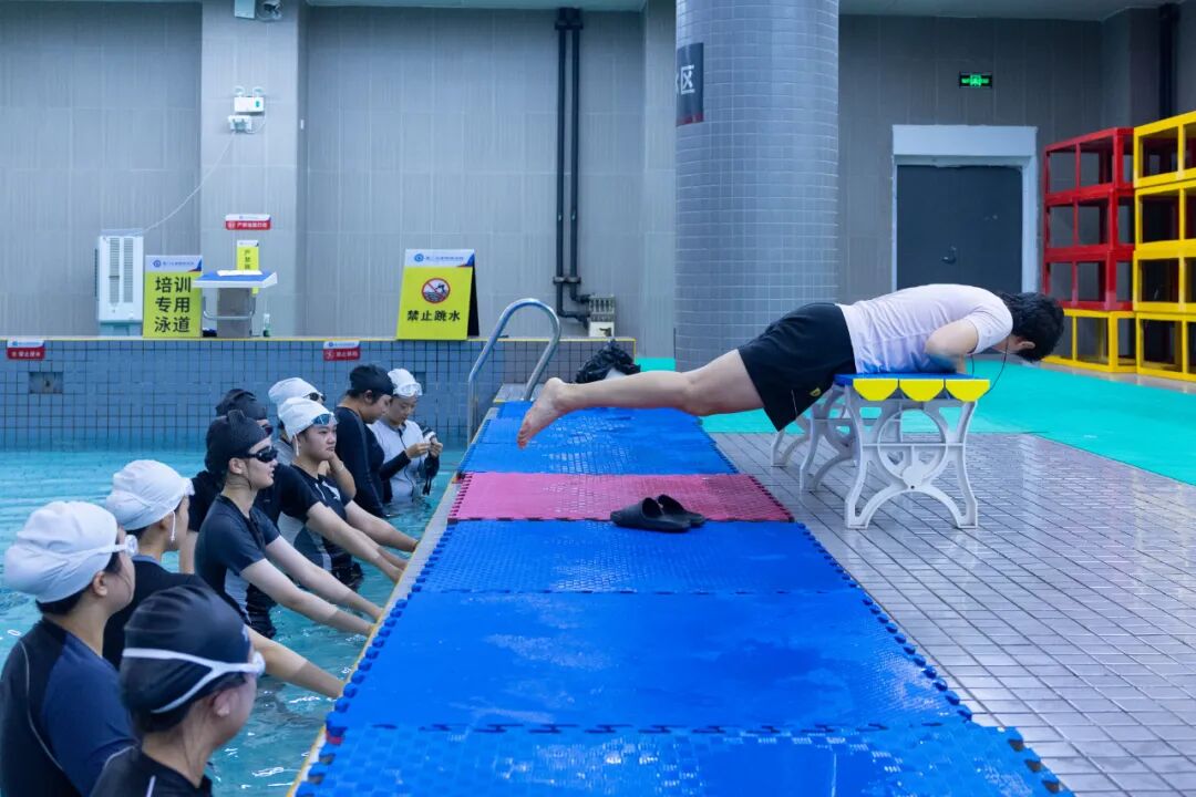 在体育部王菲老师看来,游泳的意义远不止于体能锻炼。“学习游泳需要学生不断克服困难、持之以恒,这是一个建立自信、超越自我的过程。”她说道,“同时,游泳也能增强心肺功能,提升身体协调性与反应能力。而在与同伴共同练习、协作竞赛的过程中,团队精神与社会交往能力也自然生长。”