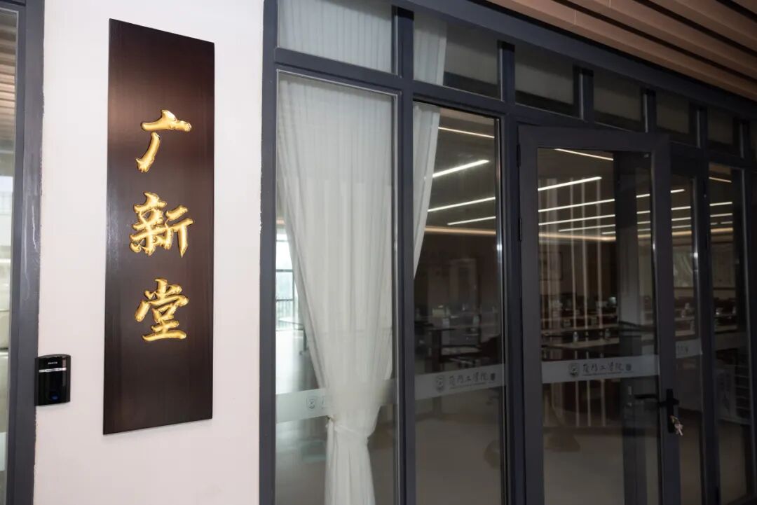 “广新堂”会议室:位于图书馆三层的“广新堂”会议室,体现了高效与人文的平衡。利旧改造的木质桌椅,在节约资源的同时延续了空间的温暖质感。主背景墙配备大型LED屏幕,确保多媒体演示的流畅进行。清晰的动线规划与舒适的灯光环境,让每一次会议、每一场学术研讨都能在专注、顺畅的氛围中展开。