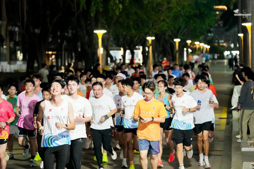 简短而热烈的热身活动后,随着起跑指令发出,队伍宛若一条发光的星河渐渐漫入校园的夜景之中。脚步声、呼吸声与闪耀的光影交织,青春的活力在每一次摆臂、每一次迈步中迸发。