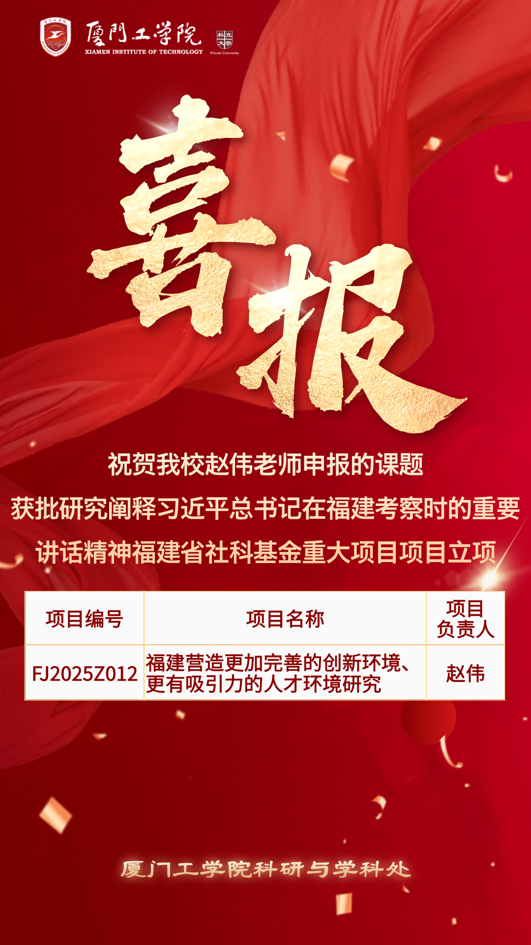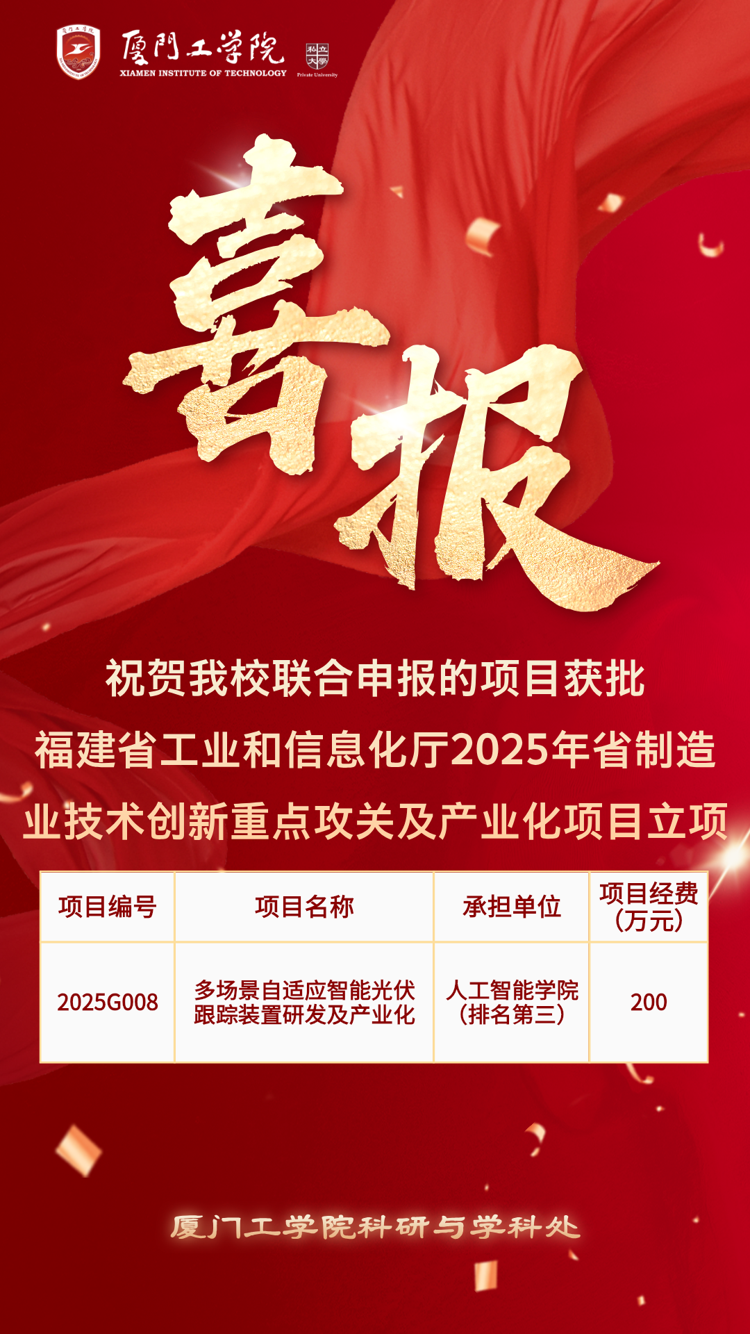 省级科技计划项目实现“零突破”:首次成功获批“2025年福建省引导性科技计划”项目。该项目的获批,填补了我校在省级科技计划项目领域的空白,充分证明了我校在应用技术研发和基础应用研究领域的潜力得到了省级层面的肯定,科研竞争力不断提升。