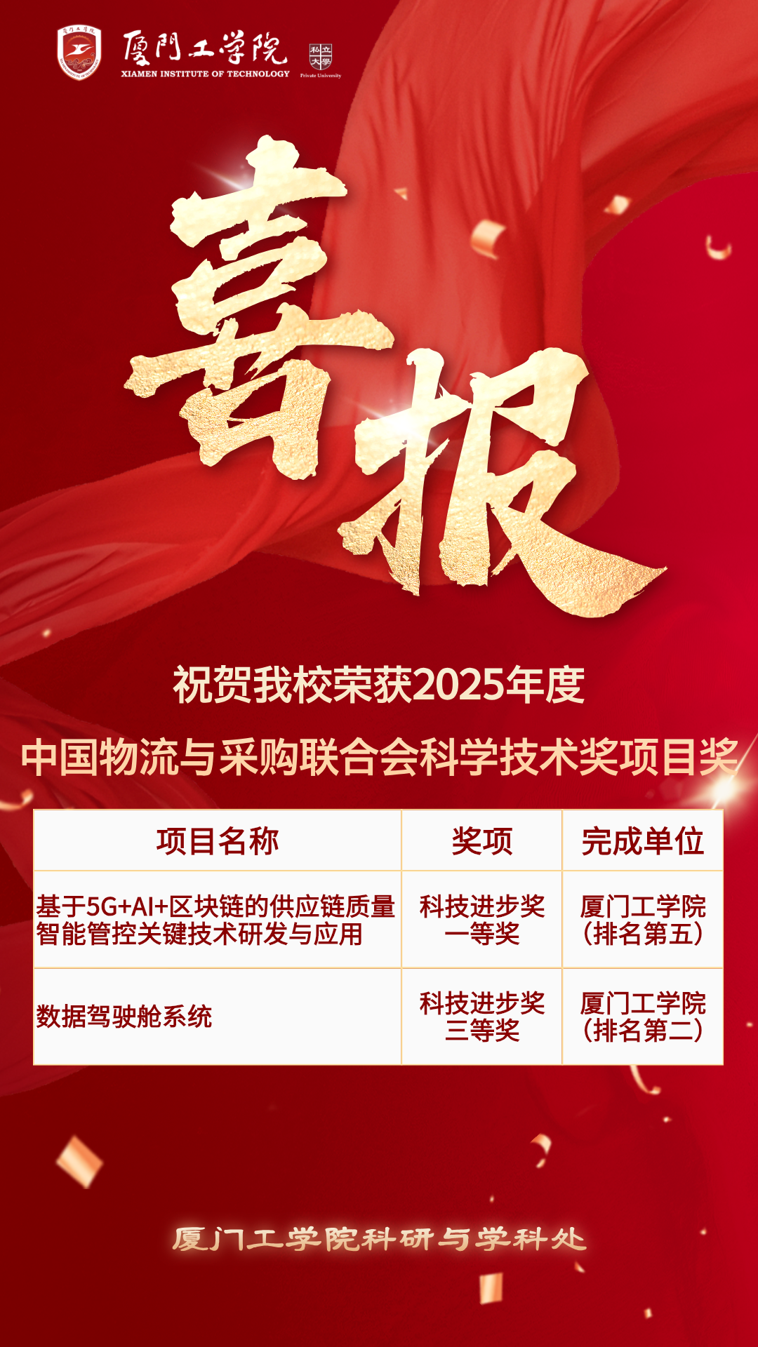 开放创新生态成型见效:学校按照“需求驱动、敏捷响应、价值共创”协同思路,持续推动对外科研合作,学校开放创新生态逐步形成体系,并取得阶段性成效,与企业高校合作获批福建省工信厅制造业、软件业技术创新重点攻关及产业化项目、2025年度厦门市产学研合作项目,荣获2025年度厦门市科学技术奖三等奖、2025年度中国物流与采购联合会科学技术奖项目科技进步奖一等奖、2025年度中国物流与采购联合会科技进步奖三等奖。