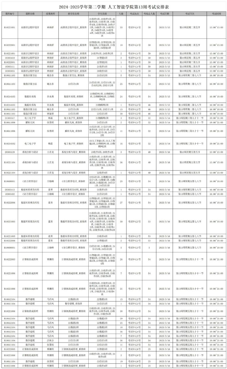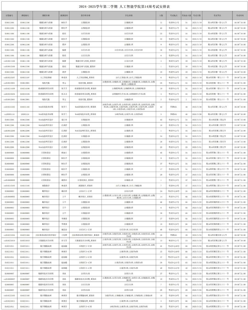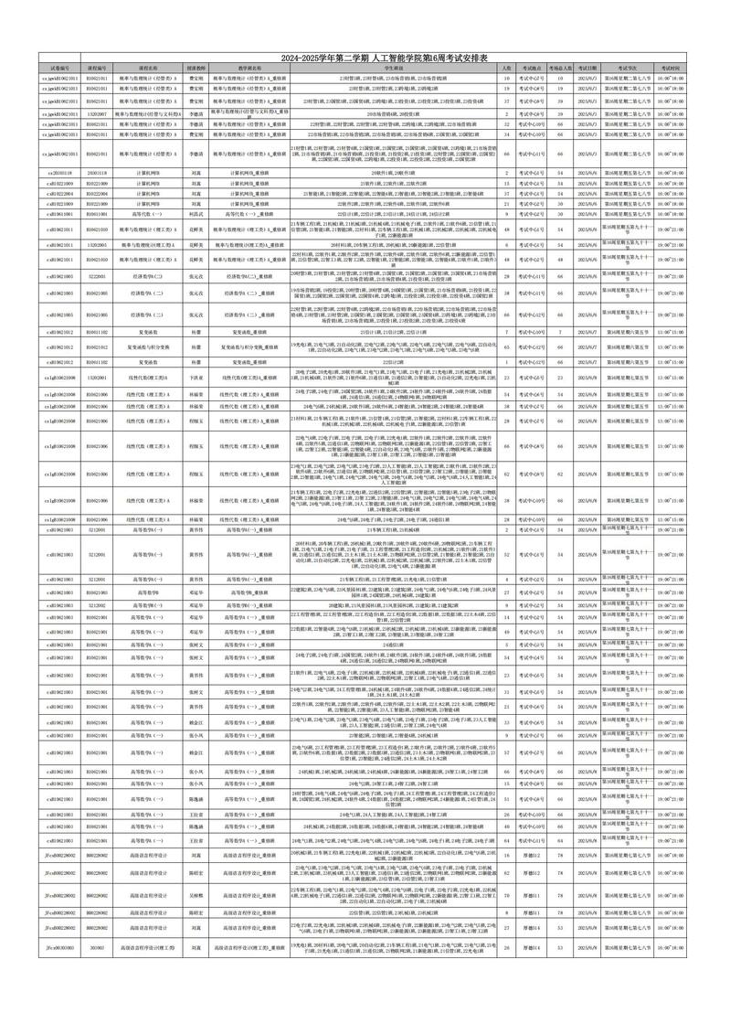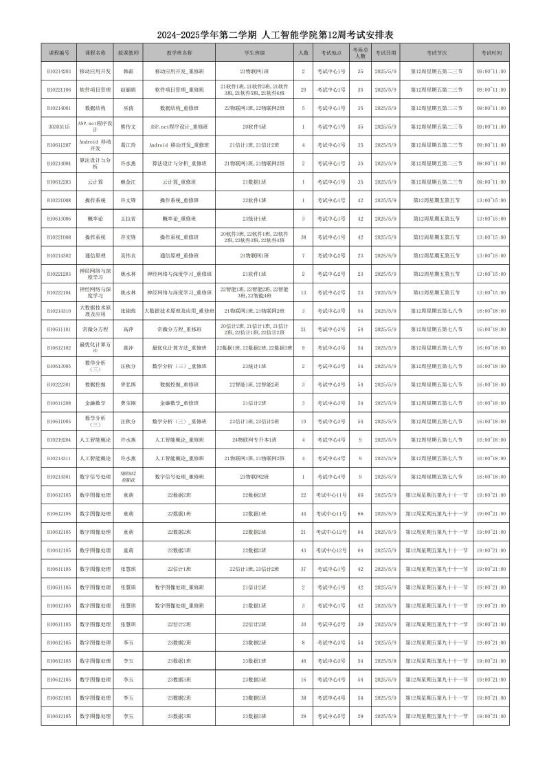 (更新至第19周)2024-2025学年第二学期 人工智能学院期末考试安排表