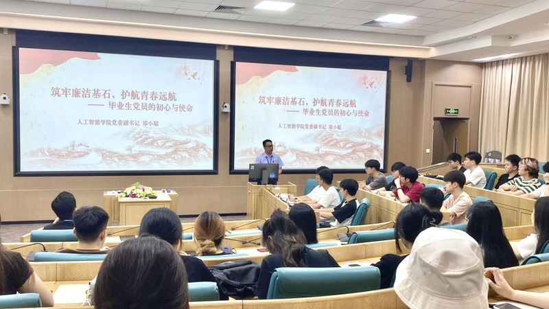 为深入学习廉洁精神,引导2025届毕业生党员进一步锤炼思想品德,为大家的职业生涯和人生道路筑牢思想防线,让廉洁之花在青春的心田绚丽绽放!6月17日上午,人工智能学院在合一报告厅开展2025届毕业生廉洁教育活动。本次活动由友敏书院学生第一党支部书记林益杭主持,出席本次活动的有人工智能学院党委副书记、行政副院长郑小聪老师,友敏书院学生第二党支部书记杨毅立老师及全体毕业生党员。