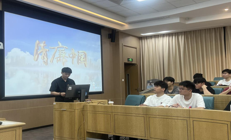 首先,主持人友敏书院学生第一党支部书记林益杭老师播放一段精心准备的视频《清廉中国》,拉开了廉洁教育的序幕。视频中鲜活的案例、深刻的解读,引发了在场每一位同学对廉洁的初步思考,也为后续的学习奠定了良好基础。