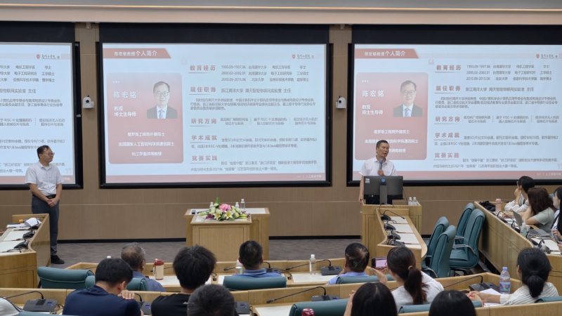 讲座由向汉城副院长主持,向院长首先对陈宏铭教授的莅临指导表示热烈欢迎,并向与会师生介绍了陈教授的教育经历、研究方向与学术成果等个人简历。陈教授现任浙江海洋大学海天智能物联网实验室主任,长期致力于物联网技术与应用、芯片设计/制造/封测与RISC-V处理器的教学和科研工作,发表SCI/EI论文50余篇,出版2本RISC-V处理器、2本鸿蒙软硬件系统开发与1本Java编程等学术专著。
