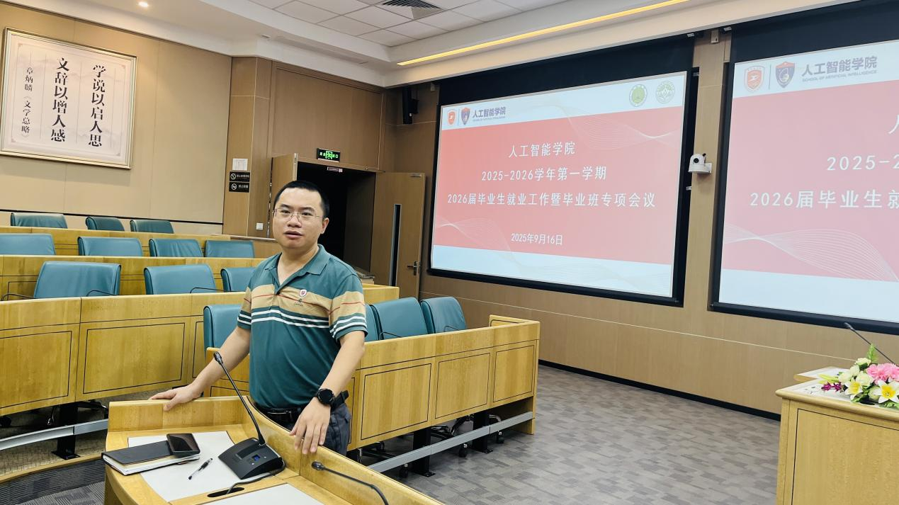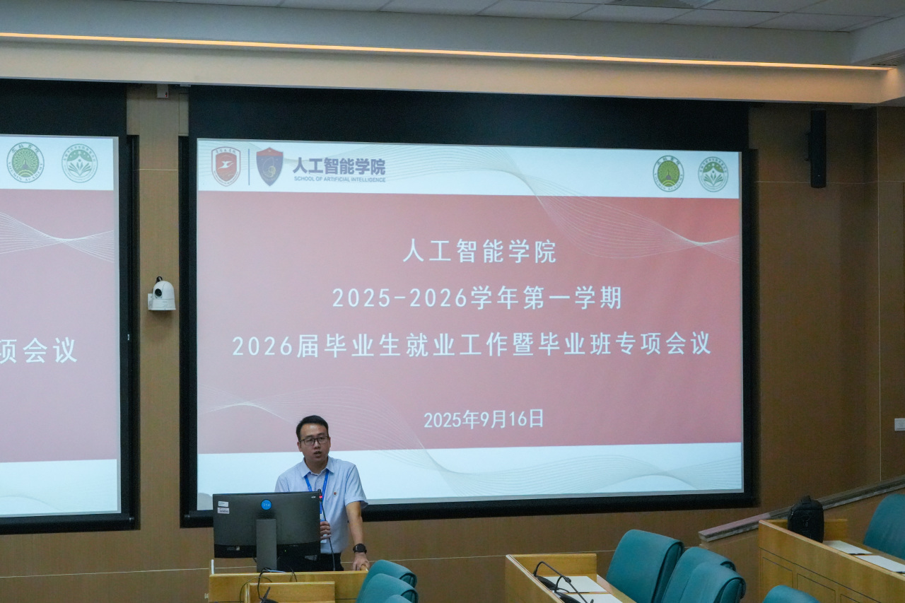 2025 年 9 月 16 日下午,人工智能学院在正心大厦合一报告厅召开 2026 届毕业生就业工作暨毕业班专题会议,正式启动新一年度毕业生就业服务工作。