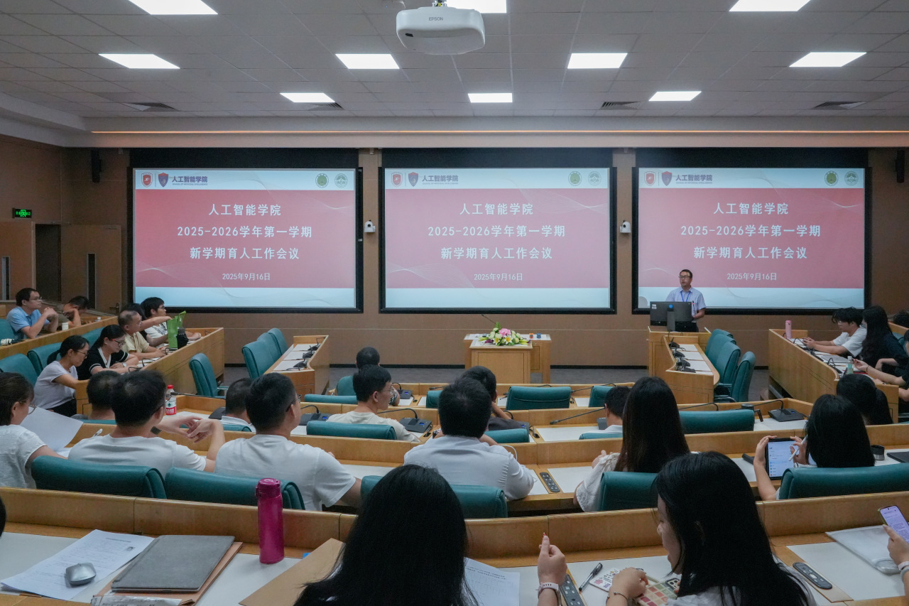 2025年9月16日15:30,人工智能学院在正心大厦合一报告厅召开新学期育人工作会议。学院执行院长谢志春、行政副院长郑小聪出席指导,全体班级导师、辅导员参会,会议围绕“压实育人责任、细化工作举措”部署任务。