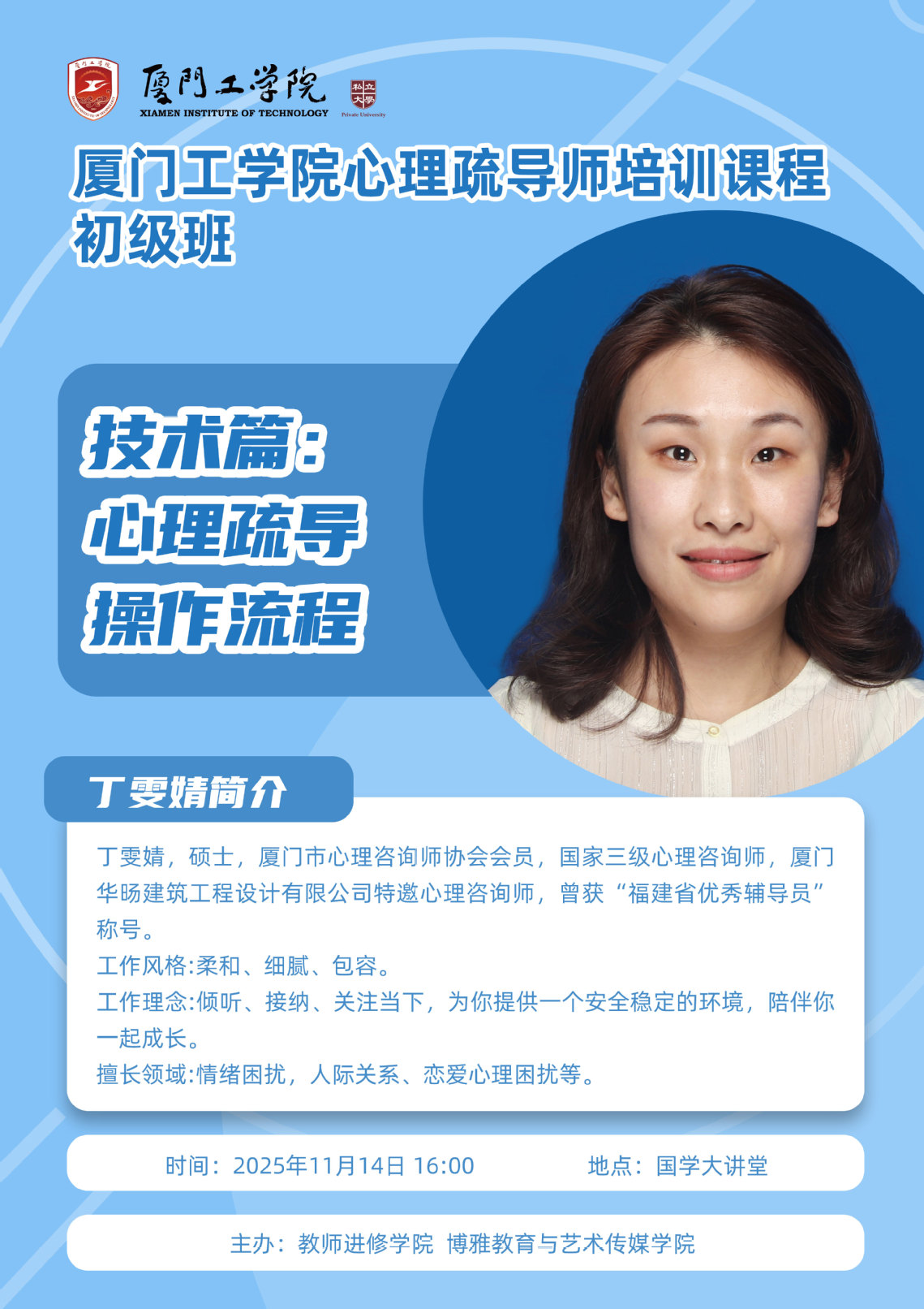 教师进修| 预告 厦门工学院心理疏导师培训课程初级班——技术篇:心理疏导操作流程