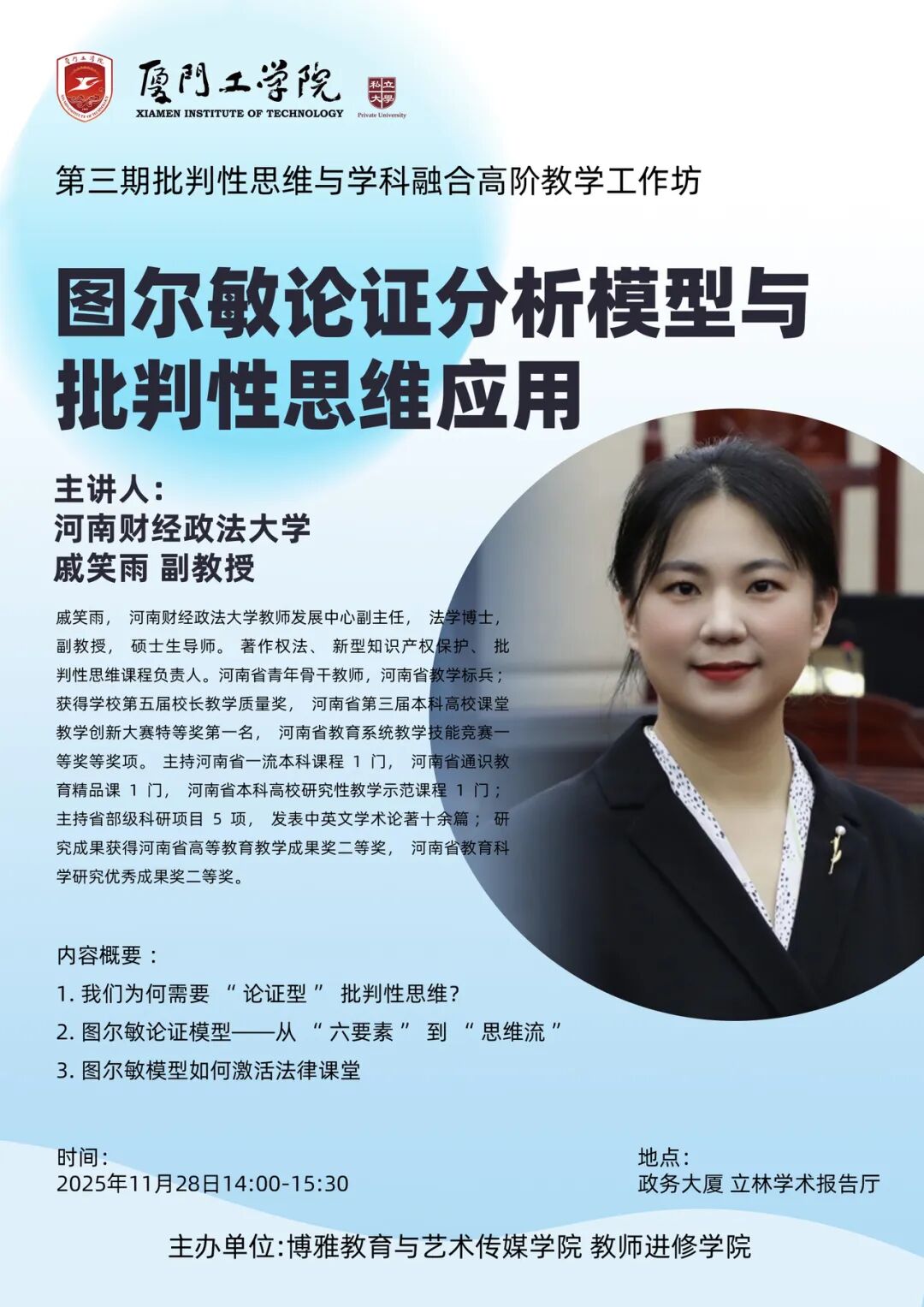 教师进修 | 预告 第三期批判性思维与学科融合高阶教学工作坊:图尔敏论证分析模型与批判性思维应用