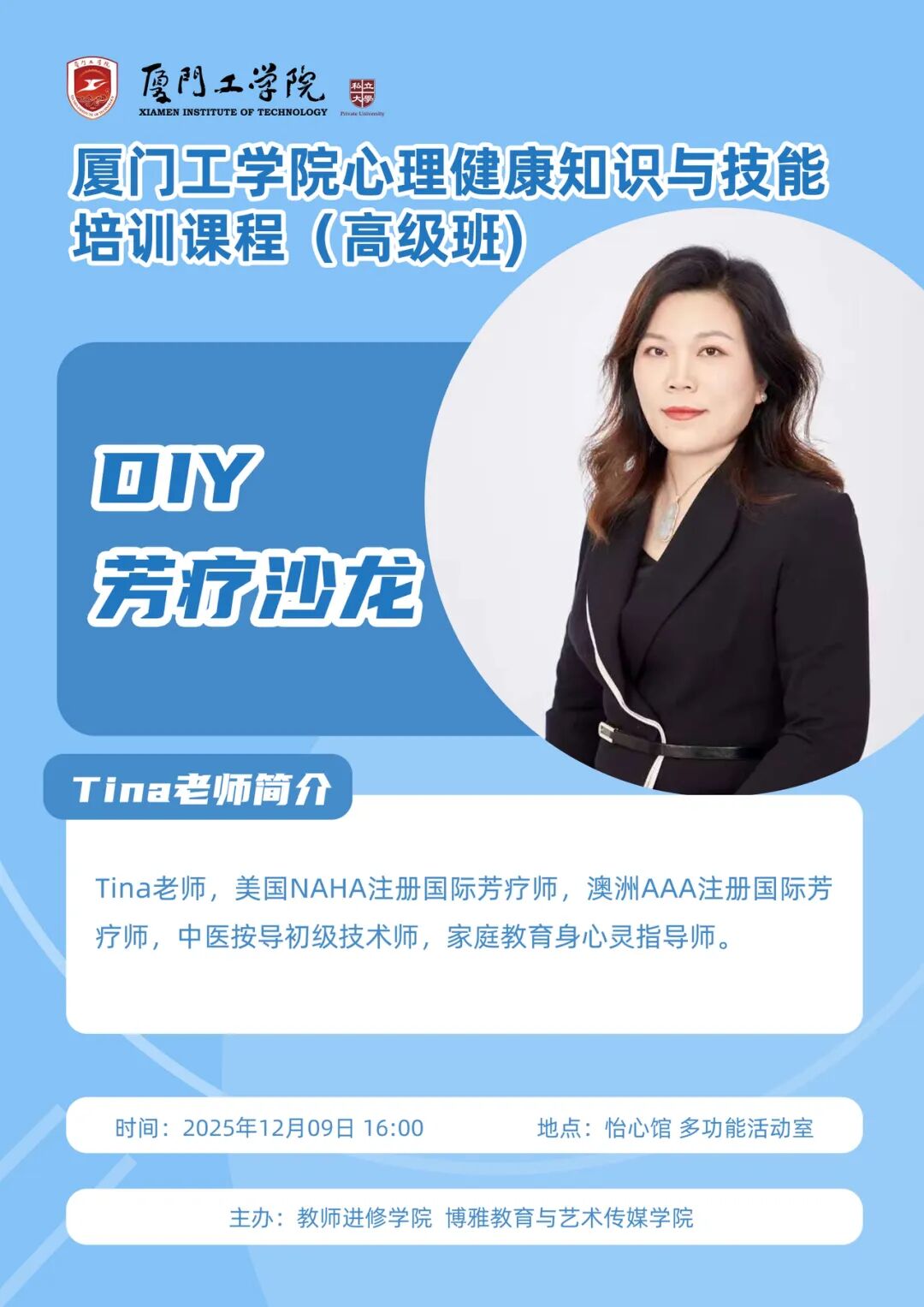 教师进修 | 预告 厦门工学院心理健康知识与技能培训课程(高级班):DIY芳疗沙龙