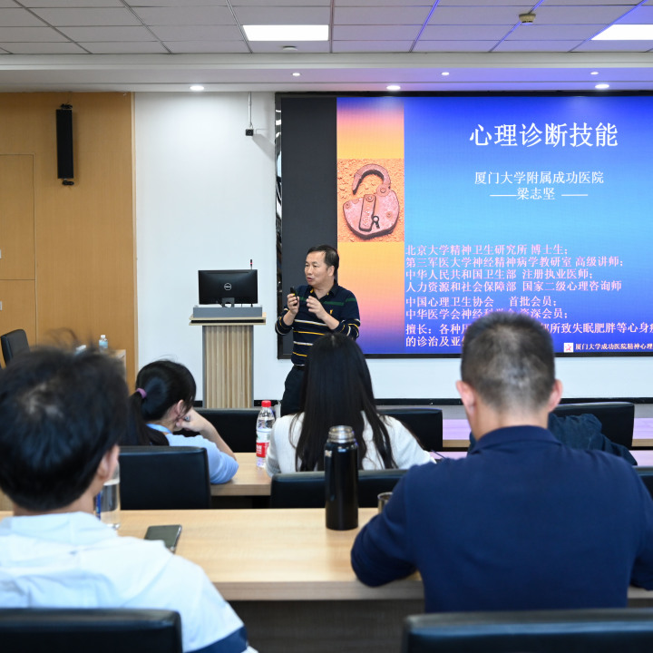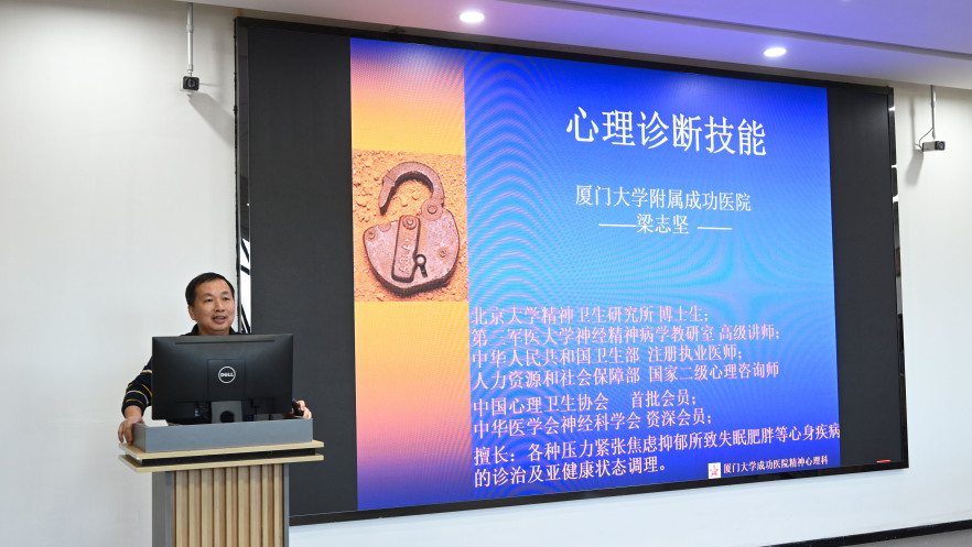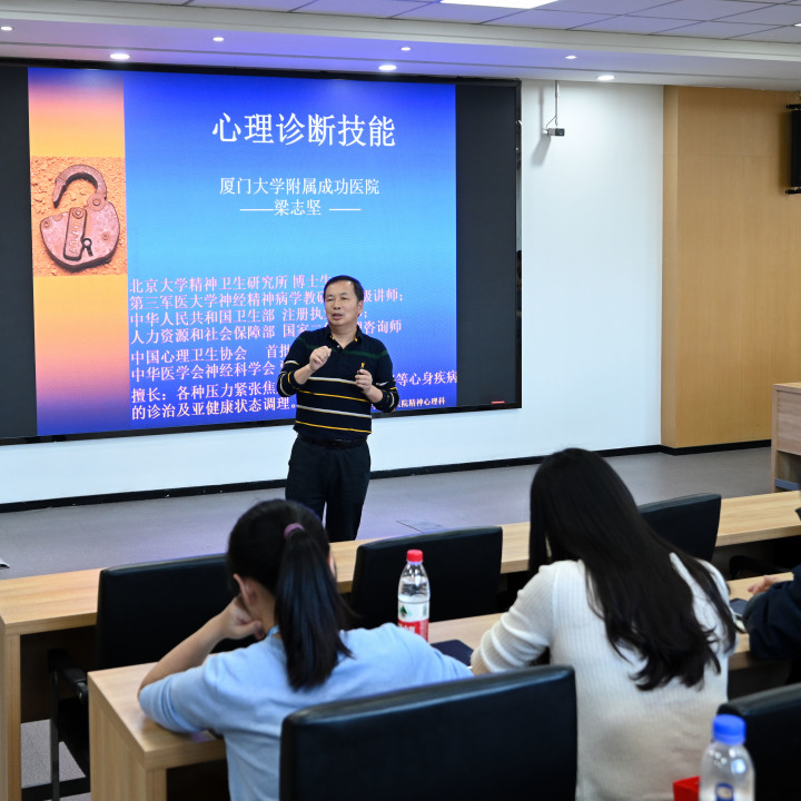 11月14日下午,厦门工学院心理健康知识与技能培训课程(中级班)——“心理诊断技能”专题培训在工程坊404教室顺利开展。本次培训由梁志坚老师担任主讲。