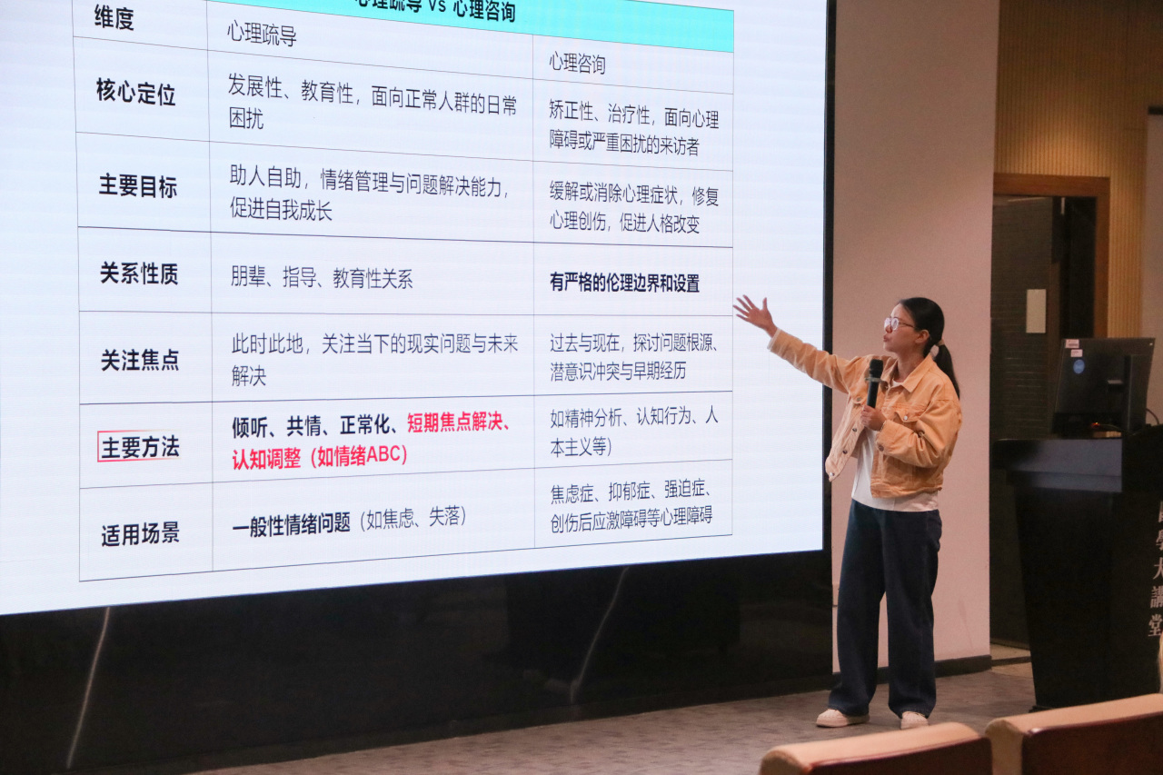 培训聚焦心理疏导技术的实际应用场景。邹小群老师结合丰富案例,系统讲解了心理疏导技术在学生工作、师生互动等具体情境中的实践要点与操作技巧,帮助学员将理论知识与实际工作有效衔接。