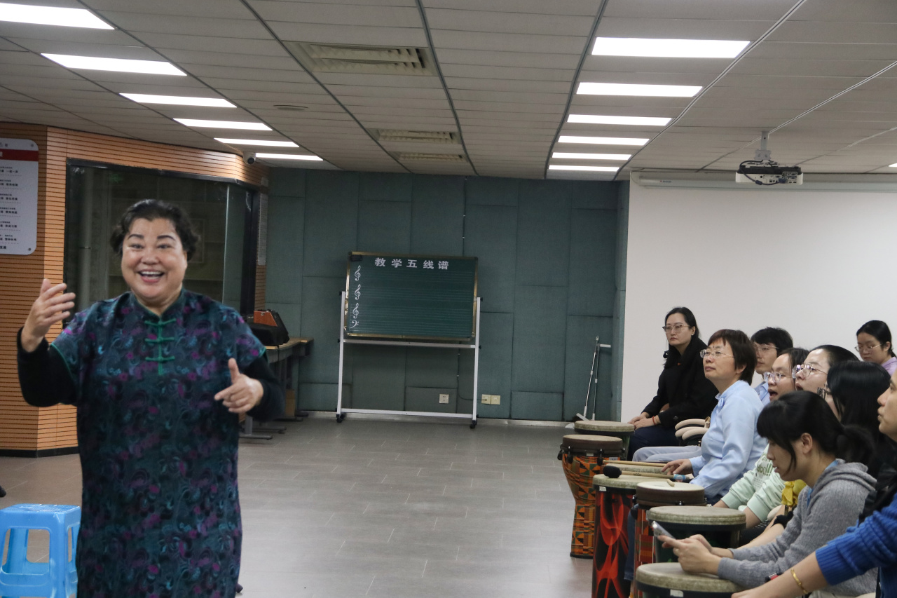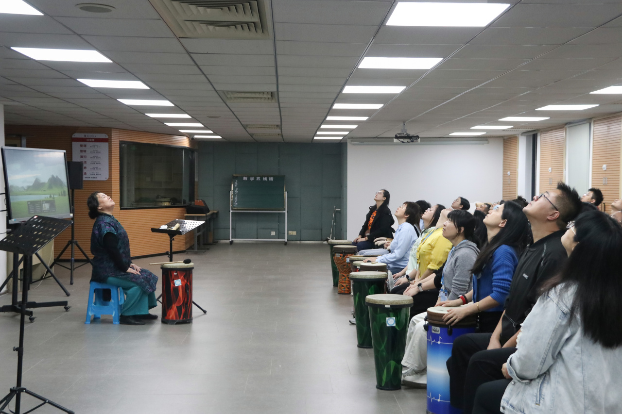 培训在专业音乐疗法室开展,张虹霞老师通过理论讲解与现场体验相结合的方式,系统介绍了音乐疗法的基本原理与学生心理工作中的应用场景。