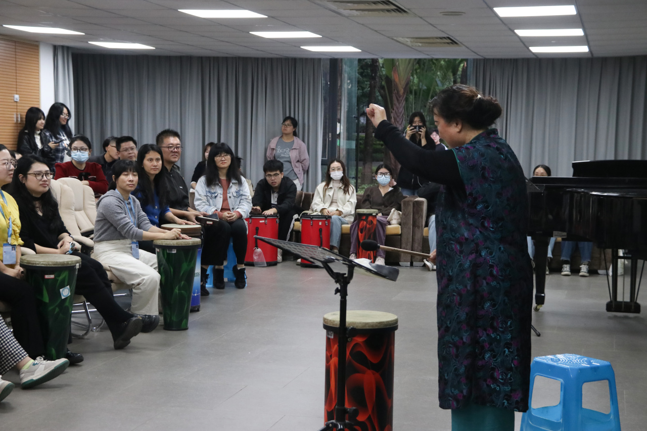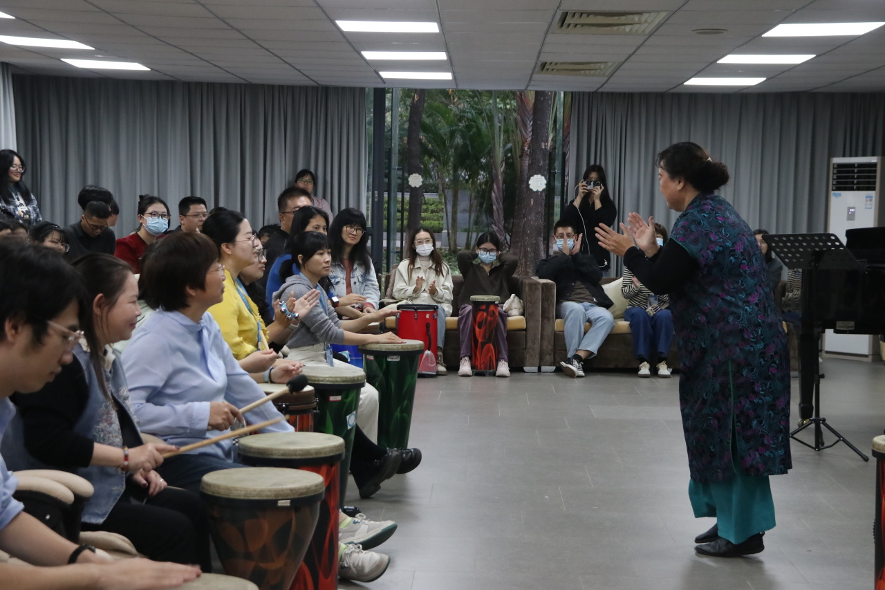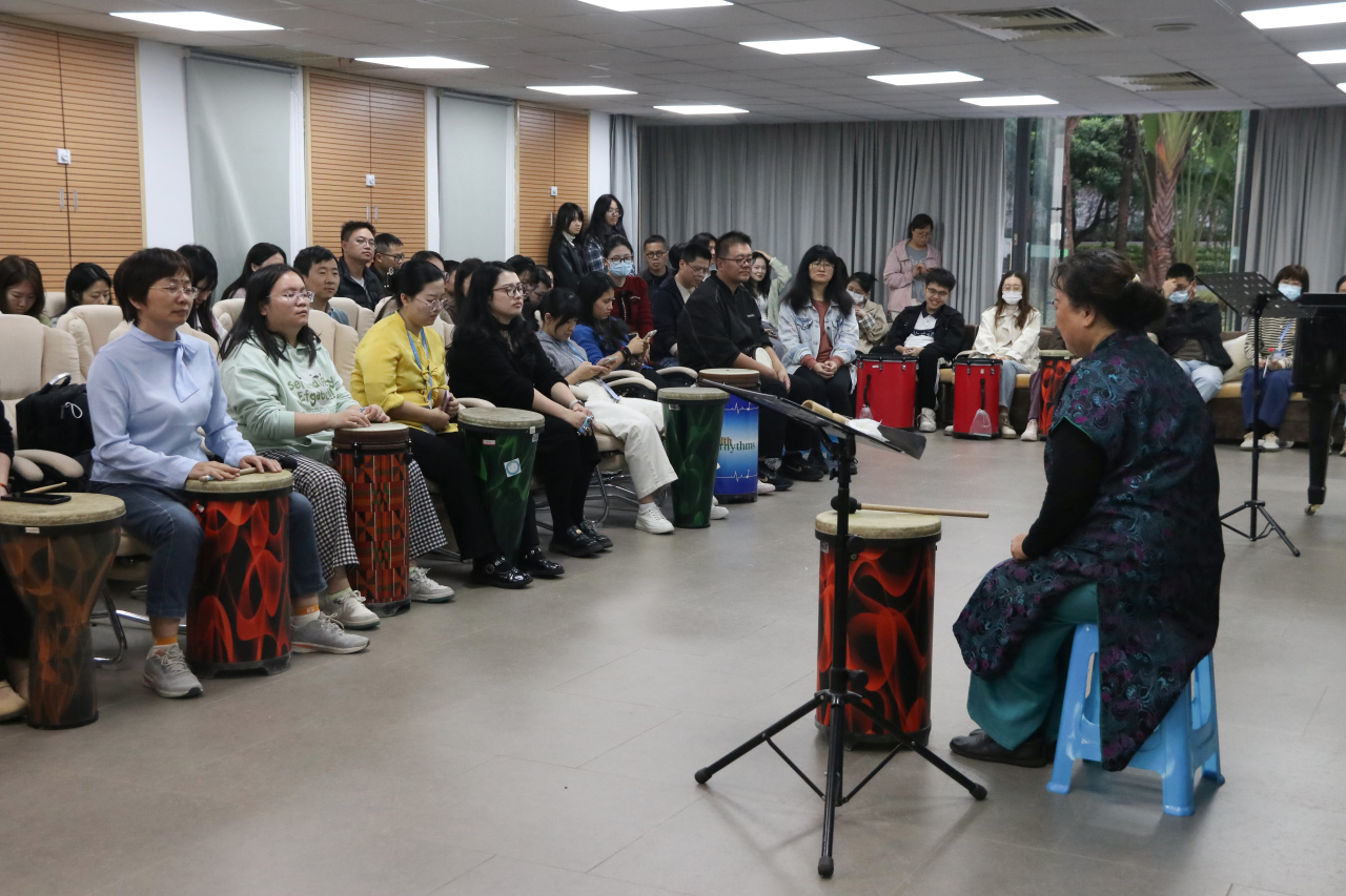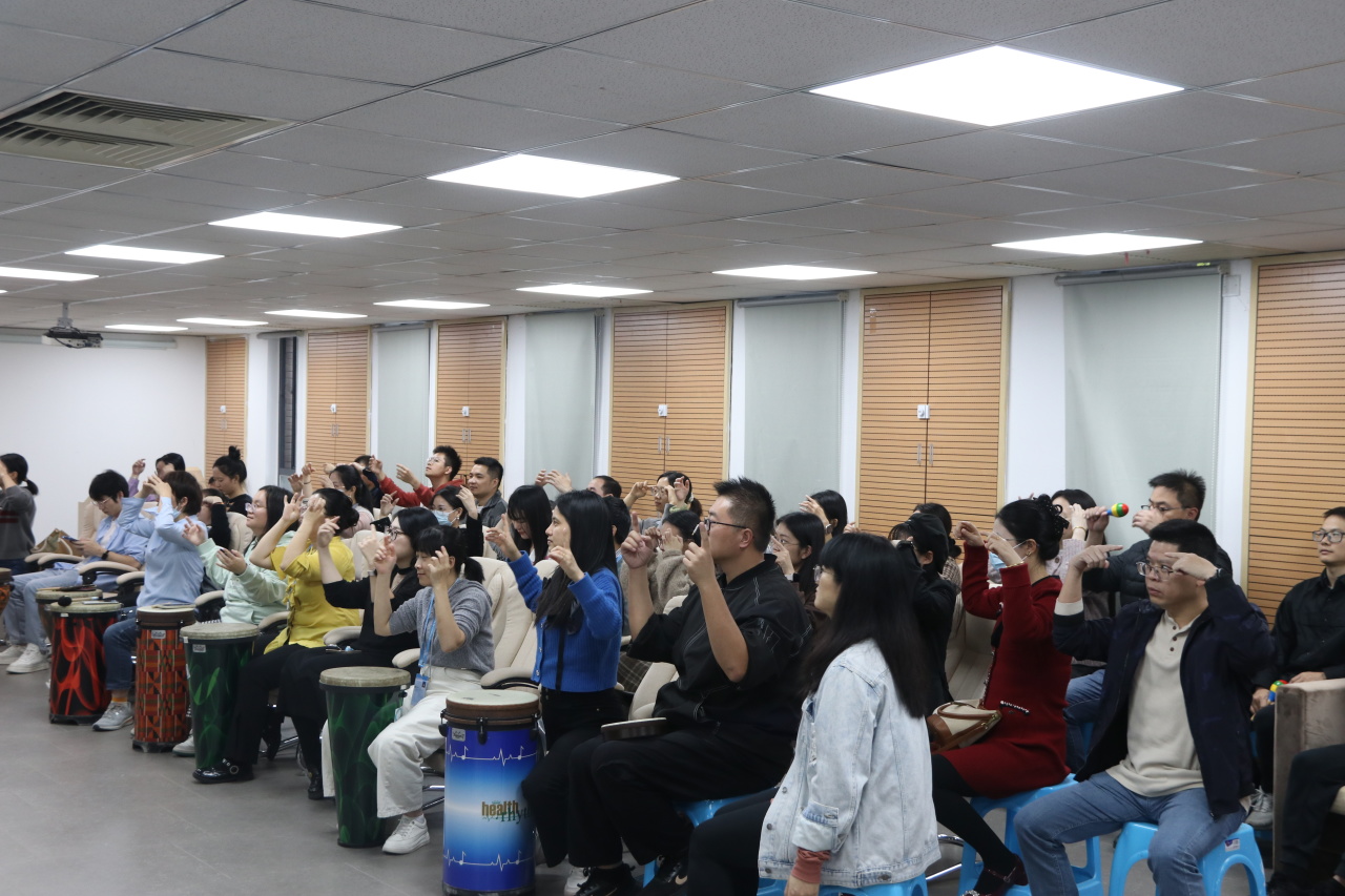 活动中,参训教师通过实际参与音乐互动、节奏体验等活动,亲身体验了音乐疗法在情绪调节、压力缓解、团队建设中的实际效果,掌握了基础的实践方法,现场气氛热烈,轻松活跃。